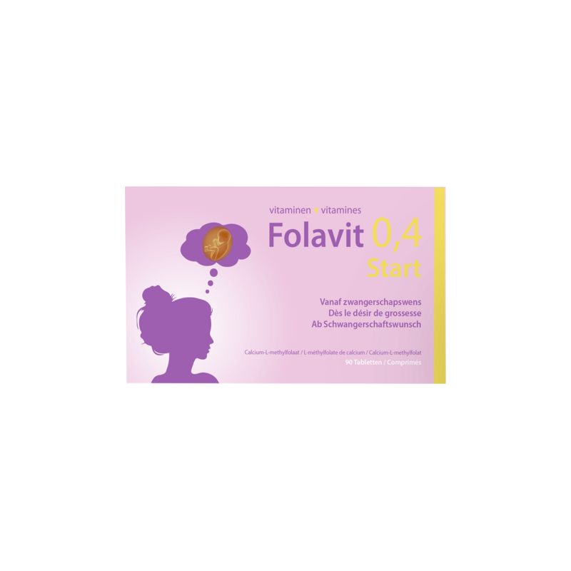 Folavit 0,4 Start est un complément alimentaire spécialement développé pour les femmes désirant avoir un enfant. Il contient la forme active de folate, notamment 451 µg de L-méthylfolate de calcium par comprimé. 451 µg de L-méthylfolate de calcium équivaut à 400 µg d'acide folique.