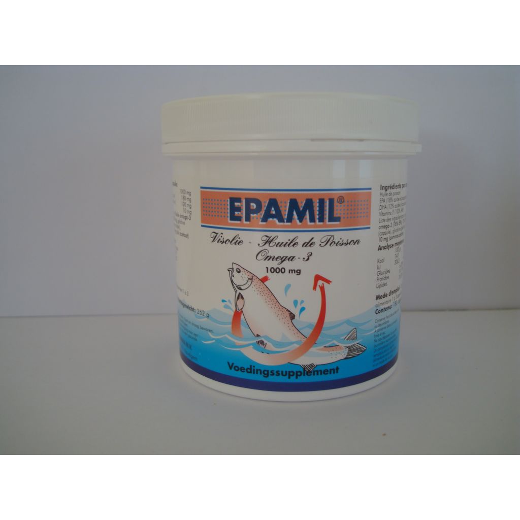 Epamil contient EPA (acide eicosapentaénoqiue) et DHA (acide docosahexaénoïque). Epamil contribue au maintien d'une concentration normale de triglycérides dans le sang et d'une pression sanguine normale.