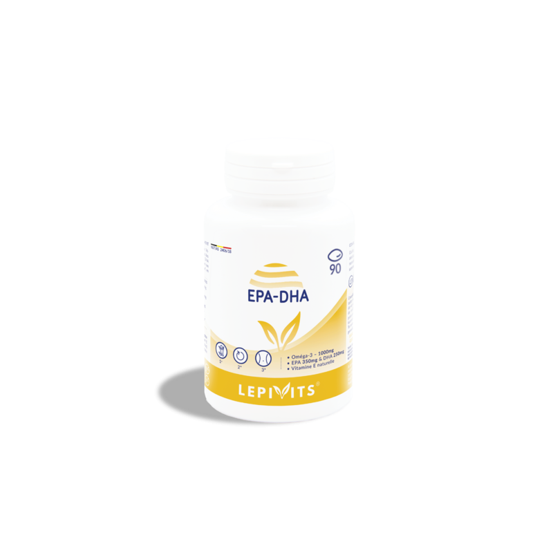 EPA-DHA Forte de chez LEPIVITS contient une huile de poisson riche en oméga-3 et concentrée en acides gras polyinsaturés EPA (acide eicosapentanoïque) et DHA (acide docosahexanoïque). L'huile est fabriquée à partir d'anchois & de sardines sauvages et est certifiée (Omegatex) sans métaux lourds ni additif toxique. L'huile est extraite d'une pêche durable labellisée "friend of the sea". Les omégas-3 interviennent dans de nombreuses fonctions biochimiques.