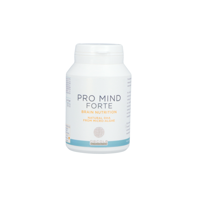Pro-Mind Forte est un complément alimentaire composé d'une forme pure et naturelle de DHA (215mg/caps). Acides gras essentiels, oméga-3 provenant d'algues.
