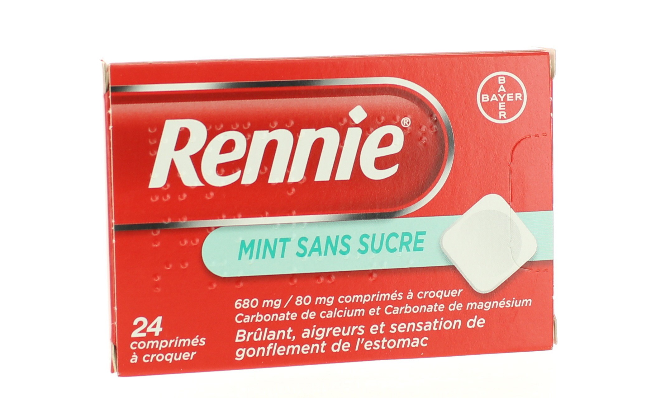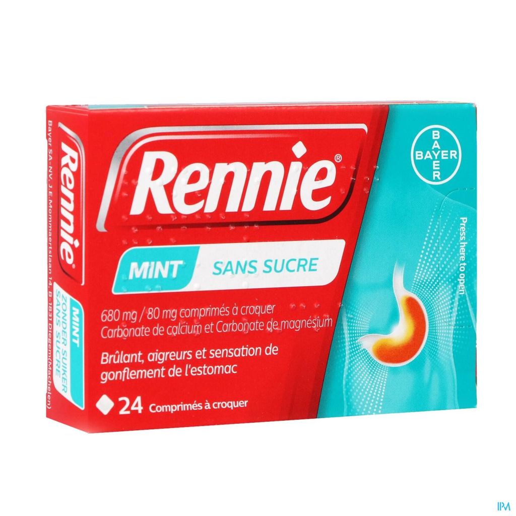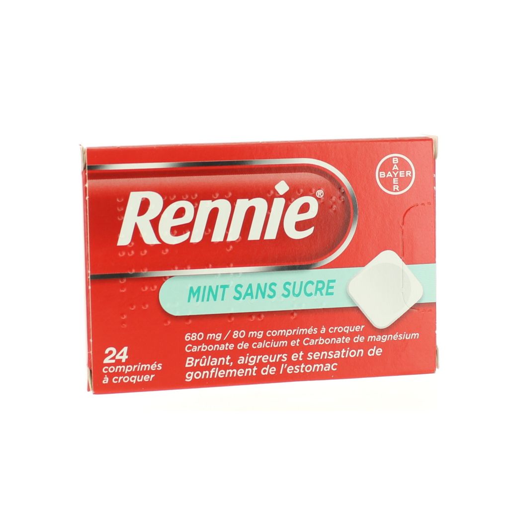 RENNIE MENTHE SANS SUCRE 24 COMPRIMES A CROQUER est un médicament : merci de lire attentivement la notice. Pas d'utilisation prolongée sans avis médical.