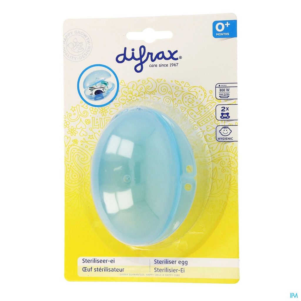 L'œuf de stérilisation pour sucettes Difrax vous permet de stériliser les sucettes de votre enfant de manière hygiénique, facile et rapide. Faire bouillir une sucette avec de l'eau chaude prend beaucoup de temps et peut être dangereux. La stérilisation à l'aide de l'œuf de stérilisation est beaucoup plus rapide et plus sûre. Convient également pour ranger ou transporter les sucettes.