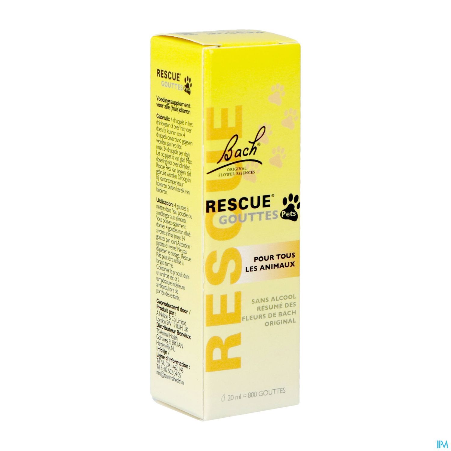 RESCUE® Pets est un complément alimentaire naturel pour tous les animaux. Il détend et rassure dans des situations que l'animal trouve désagréables. Il s'agit notamment d'une visite chez le vétérinaire, d'orages, de feux d'artifice, d'examens ou de voyages (dans une cage). RESCUE® Pets est disponible en 2 variantes, à savoir gouttes ou spray. Il ne contient pas d'alcool et n'entre pas dans la catégorie des drogues enregistrées comme dopantes. Ce produit contient le mélange de fleurs Rescue Bach original d'Edward Bach. Vous reconnaîtrez les remèdes floraux RESCUE® et Bach originaux de Mount Vernon (Royaume-Uni), le lieu de résidence et de travail du Dr Bach, à la signature Bach.