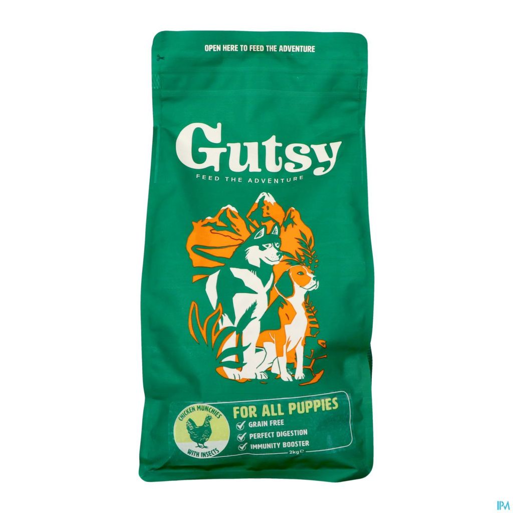 Les Gutsy Chicken Munchies pour petits chiens adultes sont sans céréales et conçus pour renforcer l'immunité et améliorer la digestion. Ils sont composés de 85 % de protéines animales, d'insectes, de patates douces, de carottes, de pommes, de poulet et de canneberges.