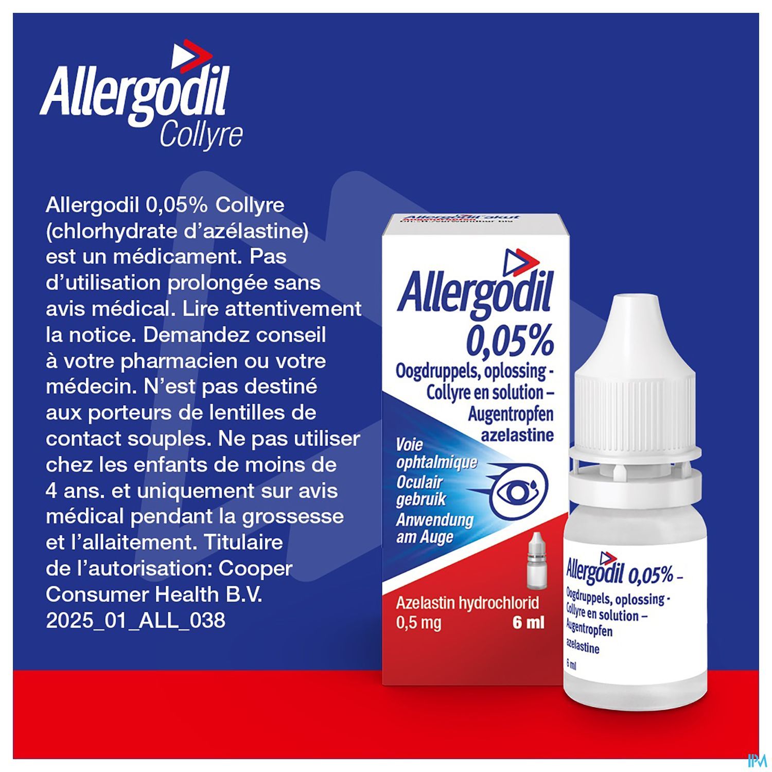 ALLERGODIL COLLYRE 6 ML est un médicament : merci de lire attentivement la notice. Pas d'utilisation prolongée sans avis médical.