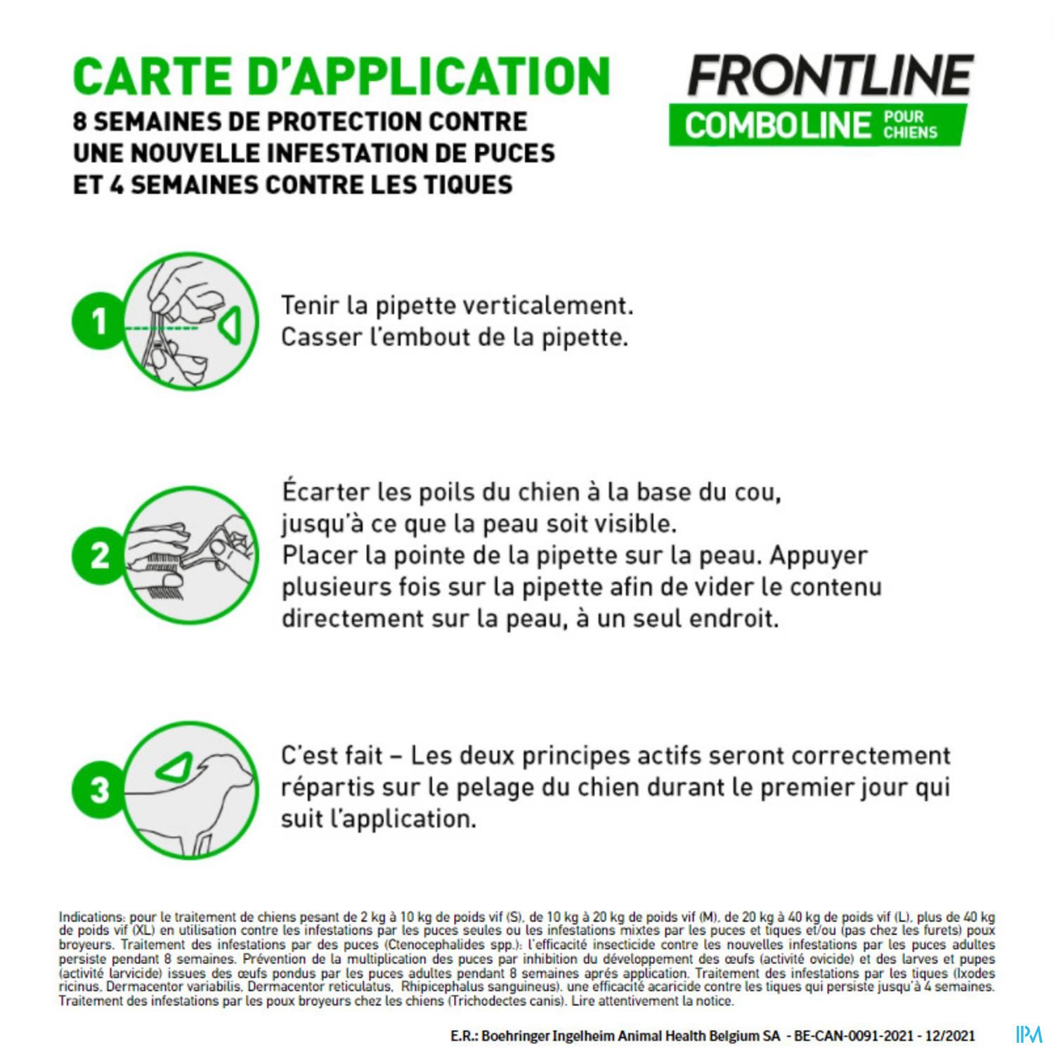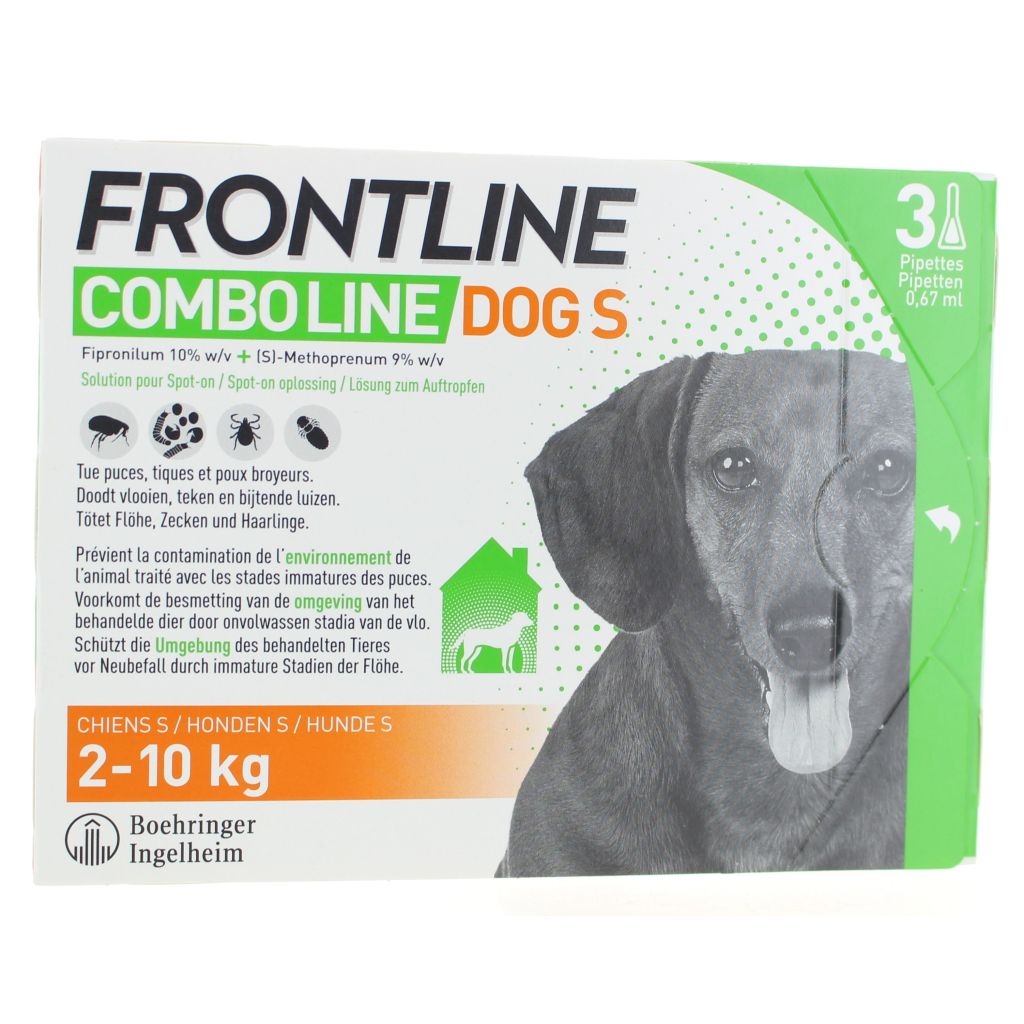 FRONTLINE Combo®Line protège votre chien pendant 4 semaines contre les puces et 4 semaines contre les tiques. Pour les chiens de 2kg à 10kg.