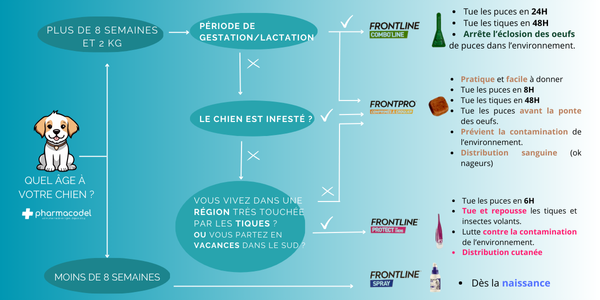 Le médicament vétérinaire doit être appliqué en deux points inaccessibles pour le chien, afin qu'il ne puisse pas lécher le site d'application. Ces sites sont situés à la base du cou en avant des omoplates et au milieu du cou, entre la base du crâne et les omoplates.