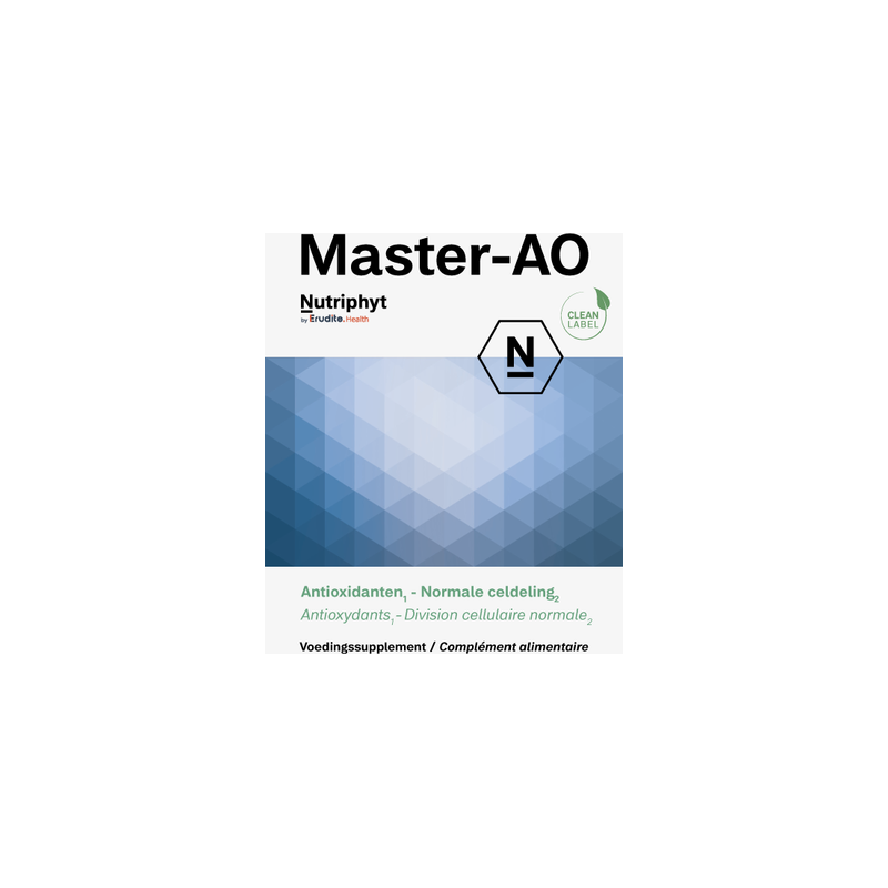 Complexe de glutathion avec de puissants antioxydants1, pour protéger contre le stress oxydatif. Master-AO est un complexe de glutathion de haute qualité, enrichi de cofacteurs spécifiques (tels que les anthocyanes et le sélénium, entre autres) qui contribuent à protéger les cellules contre les dommages oxydatifs grâce à leurs propriétés antioxydantes. Pour le maintien d'un processus normal de division cellulaire.