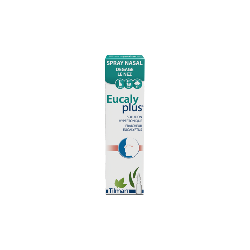 Tilman Eucalytpus Spray nasal est une solution hypertonique additionnée d'huiles aromatiques d'eucalyptus, de camomille et de myrte. Ce spray humidifie et dégage le nez. Action douce et non irritante.