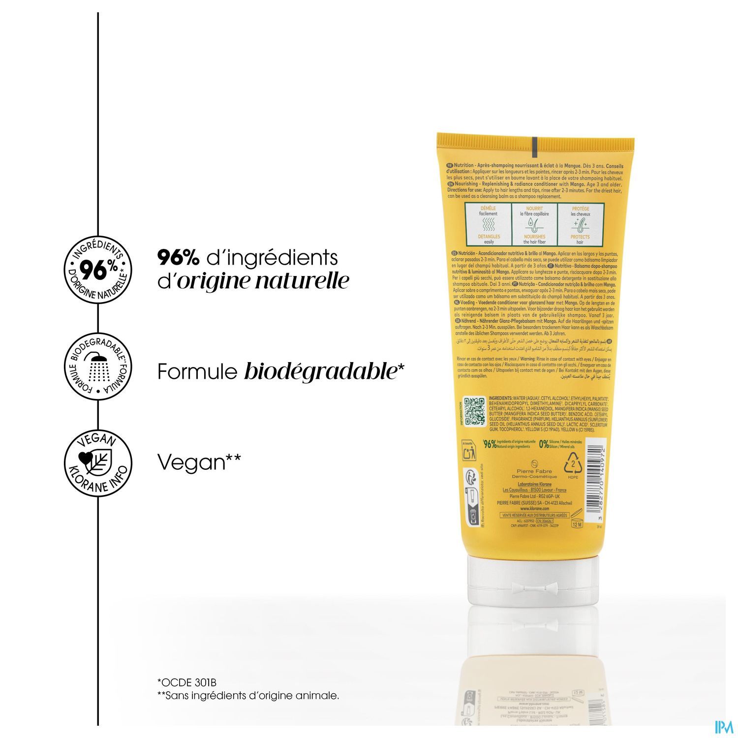 Incontournable des cheveux secs, l'Après-shampoing nourrissant et éclat à la Mangue médicinale est le soin coup de cœur des cheveux gourmands de nutrition. Sans alourdir la chevelure, il hydrate les longueurs et renforce les pointes. Sa formule enrichie en beurre de Mangue médicinale nourrit profondément la fibre pour protéger le cheveu du dessèchement. Avec sa texture soyeuse et délicatement parfumée, l'Après-shampoing est le geste complémentaire gourmand pour révéler une chevelure nourrie, souple et parfaitement démêlée en toute légèreté. Dès 3 ans.
