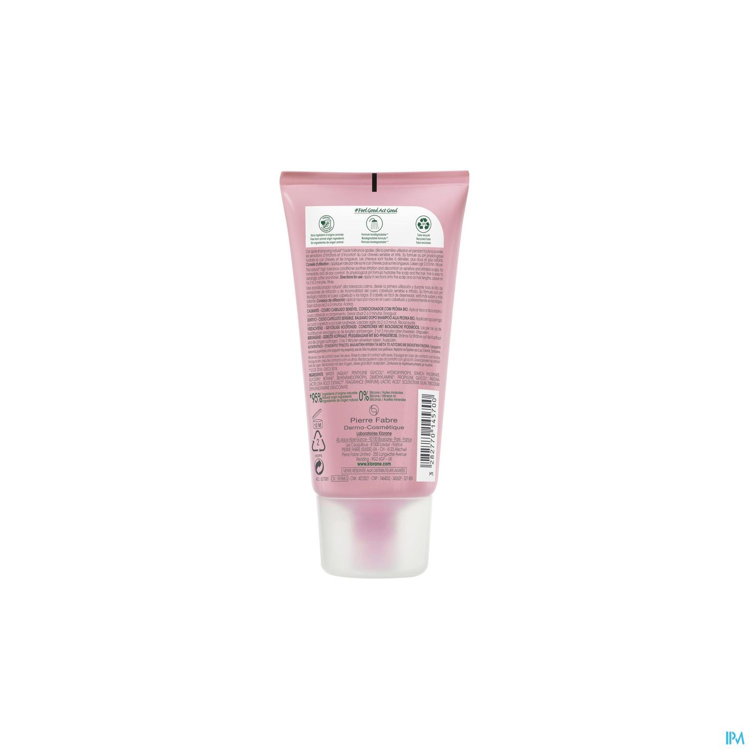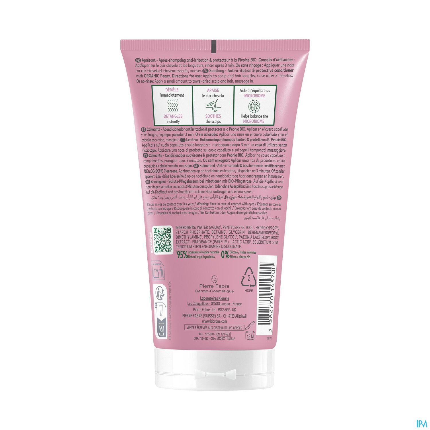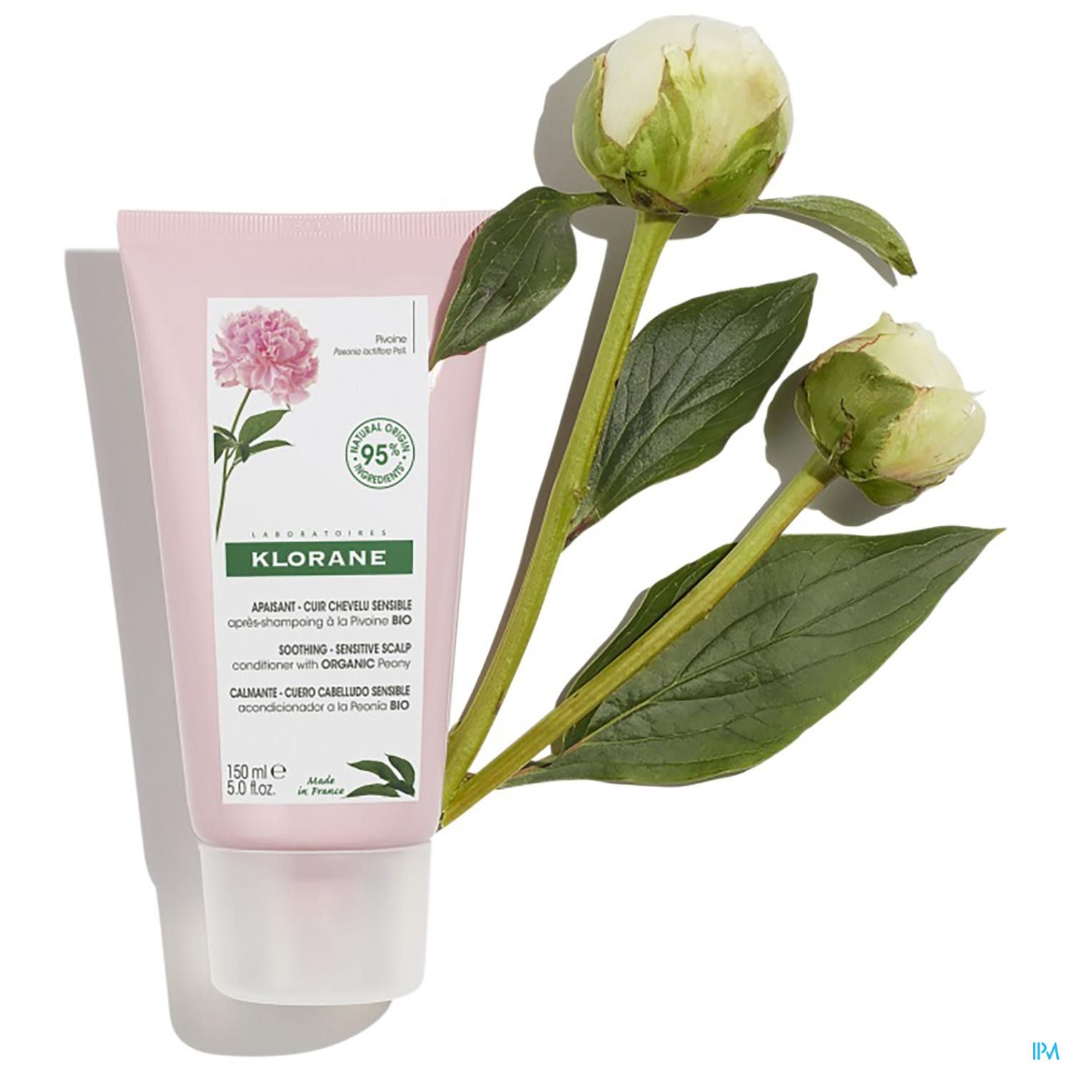 Les laboratoires Klorane ont formulé l'Après-shampoing d'origine naturelle* et végan** anti-irritation et protecteur à la Pivoine BIO pour apaiser immédiatement et durablement les cuirs chevelus sensibles, grâce à son extrait de Pivoine BIO, une fleur traditionnellement utilisée pour ses vertus apaisantes. Sa formule biodégradable*** hydrate le cuir chevelu et les longueurs. Avec sa texture très-fondante, l'Après-shampoing laisse les cheveux faciles à démêler, plus doux et plus brillants, dans un délicat parfum relaxant.