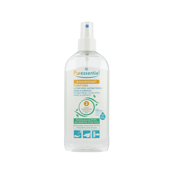 Désinfecte immédiatement les mains, sans eau, sans savon et sans rinçage. 71,4% d'alcool végétal – 3 huiles essentielles (citron, lavandin, tea tree). Aloe Vera anti-desséchant. Triple action : antibactérienne, antivirale et adoucissante. EFFICACITÉ PROUVÉE : Bactéricide EN 13727 (60 s) et EN 13697 (5 min) (S. aureus, P. aeruginosa, E. hirae, E. coli), EN 1500 (2 x (1,5ml x 30s.), E. coli), (2)Virucide EN 14476 (60 s, Adenovirus, Poliovirus, Murine Norovirus).