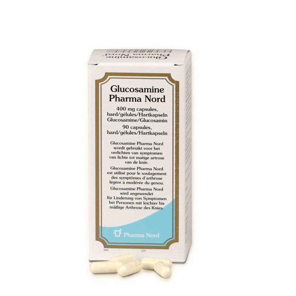 Glucosamine Pharma Nord est utilisé pour soulager les symptômes de l'artrose légère à modérée du genou. 3 capsules/jour = 1527 mg de sulphate de glucosamine