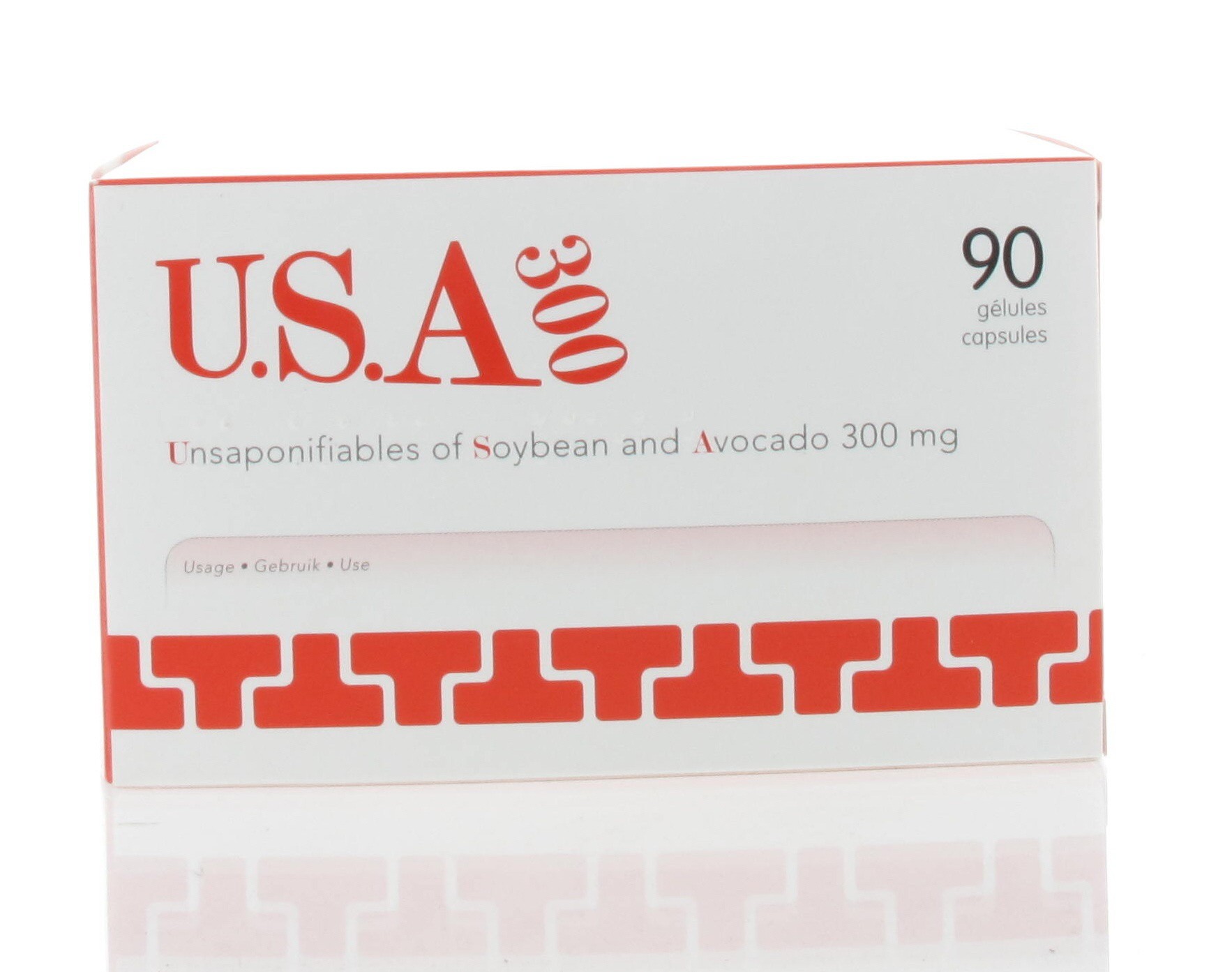 USA 300 est un complément alimentaire des laboratoires Trenker à base d'extrait insaponifiable d'huiles d'avocat et de graines de soja.