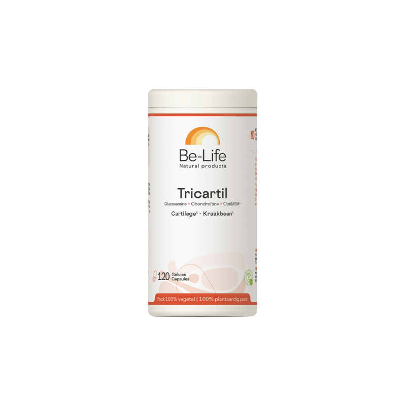 Du soutien au cartilage Pour la majorité des personnes présentant de l'inconfort articulaire ou de l'arthrose, la douleur au quotidien peut être insupportable. Le premier réflexe : bouger tous les jours à son rythme et faire des exercices de renforcement musculaire. Aujourd'hui, un intérêt croissant est porté sur certaines molécules naturelles susceptibles de réduire les douleurs et/ou de ralentir la progression de l'arthrose. Parmi celles-ci, citons : le sulfate de glucosamine, le sulfate de chondroïtine, le souffre, le silicium… Tricartil est une synergie de nutriments naturels et hautement biodisponibles. Il contient non seulement de la glucosamine, de la chondroïtine et du soufre organique, mais aussi de la vitamine C et du manganèse qui interviennent dans les tissus conjonctifs des cartilages et articulations. Tricartil contient : • De la glucosamine, de la chondroïtine et du soufre organique, des nutriments intervenant dans le cartilage • De la vitamine C qui contribue à la formation du collagène pour assurer la fonction des cartilages • Du manganèse qui intervient dans les tissus conjonctifs des cartilages et articulations.