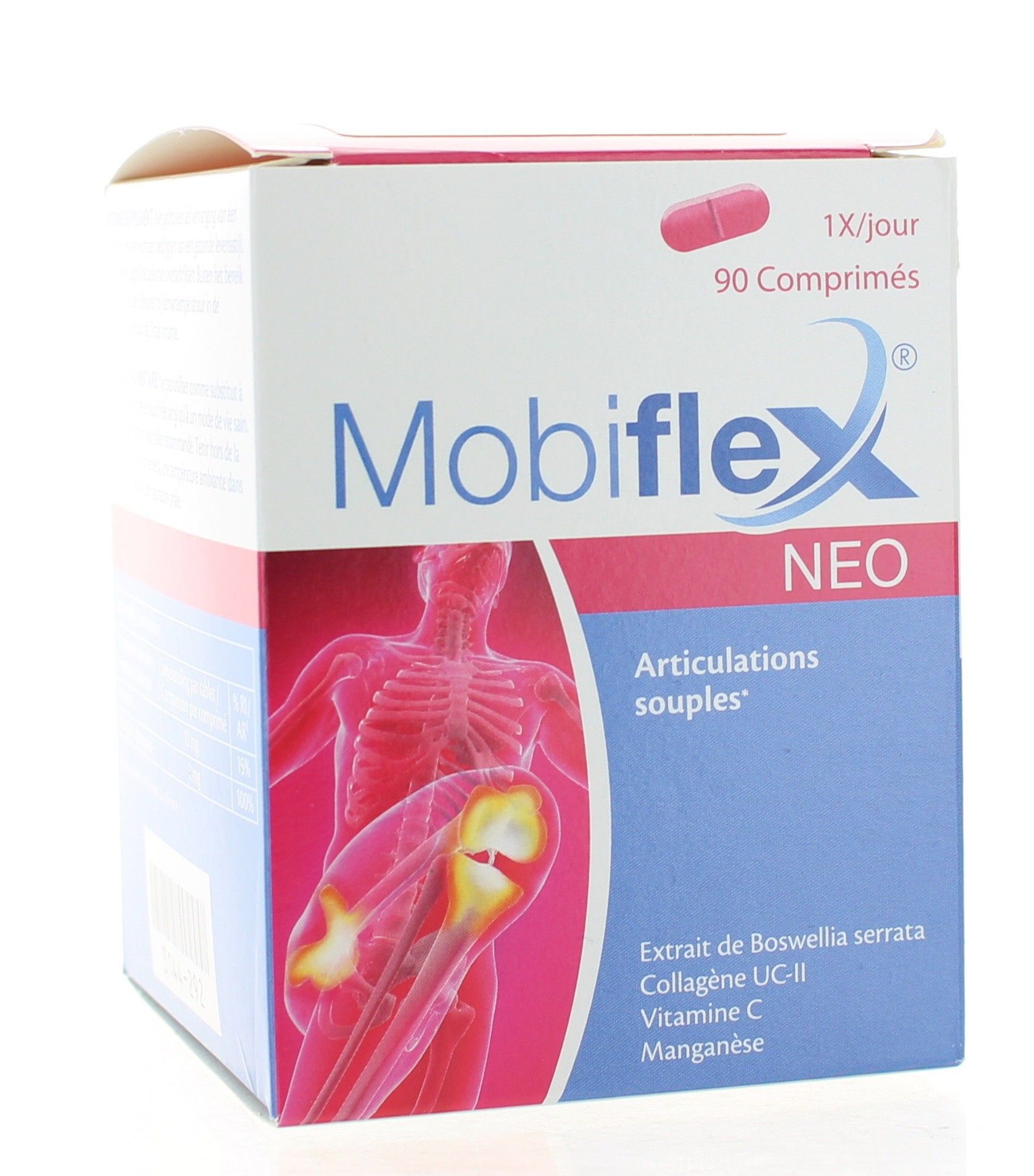 Mobiflex Neo est un complément alimentaire pour la mobilité et la flexibilité de vos articulations. Il contient : de l'extrait de Boswellia serrata, du collagène non dénaturé de type II, de la vitamine C et du manganèse. Le boswellia serrata contribue au maintien des articulations souples.