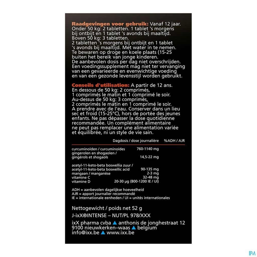 par dose journalière: 450 mg d'extrait de Boswellia à >30% AKBA,
