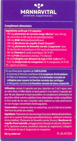 Avec du Curcuma et du Boswellia qui contribuent au maintien de la souplesse articulaire ? avec de la vitamine C qui contribue à la fabrication normale de collagène pour la fonction normale du cartilage ? avec de la manganèse qui contribue à la formation normale de tissu conjonctif.