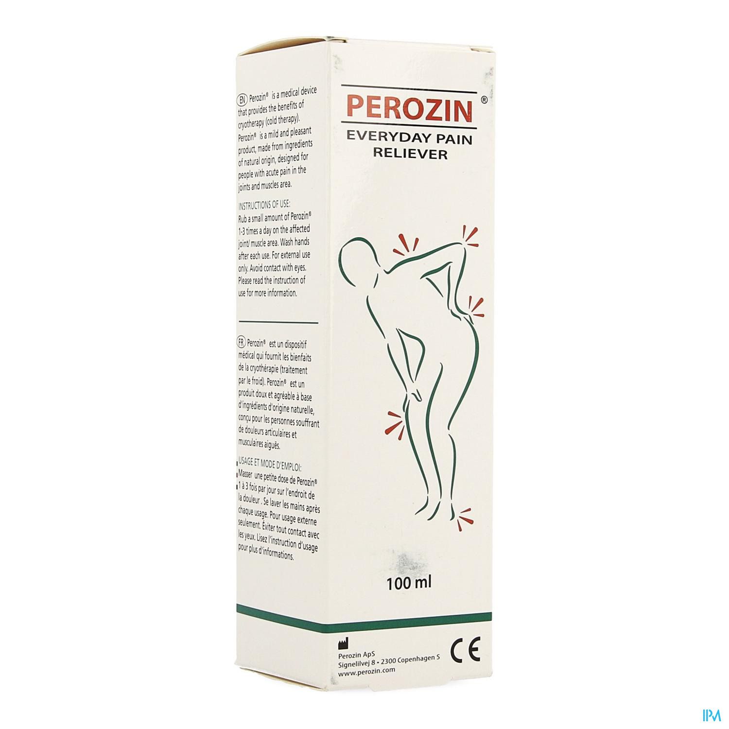 Perozin est une aide médicale qui procure les bienfaits de la cryothérapie (thérapie par le froid). Perozin est un produit doux et agréable, fabriqué à partir d'ingrédients naturels et développé pour les personnes souffrant de douleurs aiguës dans les articulations et les tissus musculaires.