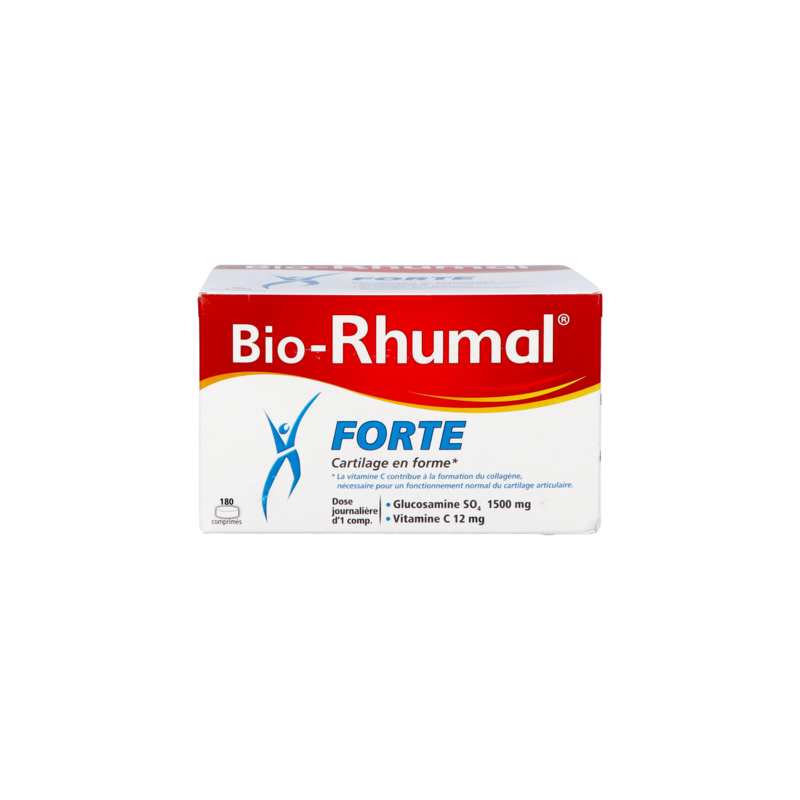 Bio-RHUMAL Forte est un complément alimentaire de haute qualité contenant 1500 mg de sulfate de glucosamine cristallin pur et 12 mg de vitamine C (15% des AJR*).
