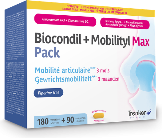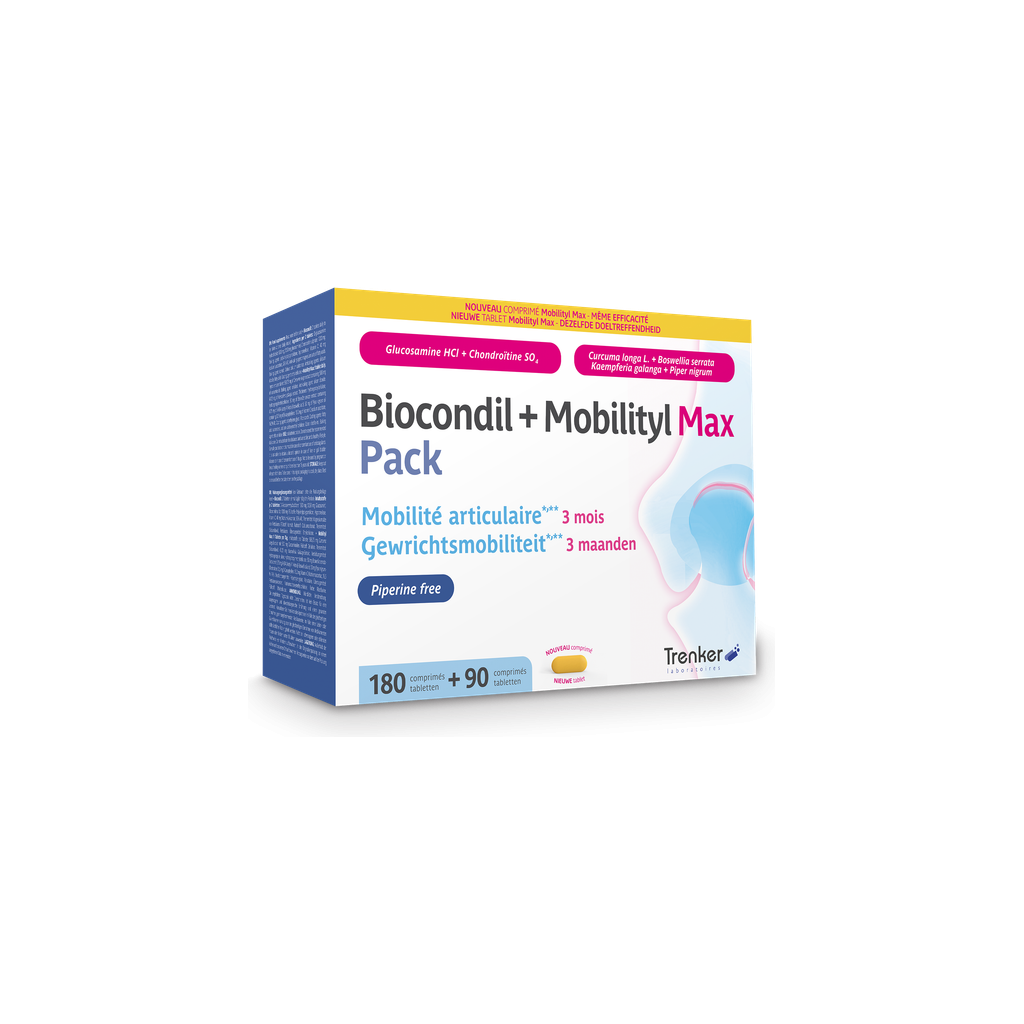 Le Duopack Biocondil + Mobilityl Max contient deux compléments alimentaires dans un seul emballage et constitue un emballage complet pour la mobilité articulaire1.