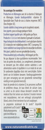 1 goutte = 50 µg de vitamine D3 (2000 UI)(1000% de l'apport journalier de référence.