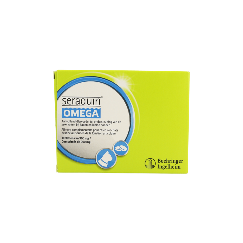 Seraquin Omega est un complément alimentaire qui soutient les articulations grâce à la puissante combinaison de glucosamine, de chondroïtine et de curcuma. Seraquin Omega contient désormais également des acides gras oméga-3 (EPA et DHA) qui contribuent à la santé des articulations et du cartilage pour une bonne mobilité. L'ajout d'acides gras oméga-3 aide votre chien ou votre chat à bouger avec souplesse. Il aide votre animal à se lever, à marcher et à jouer. Les acides gras proviennent d'huile de poissons océaniques issus de la pêche durable.
