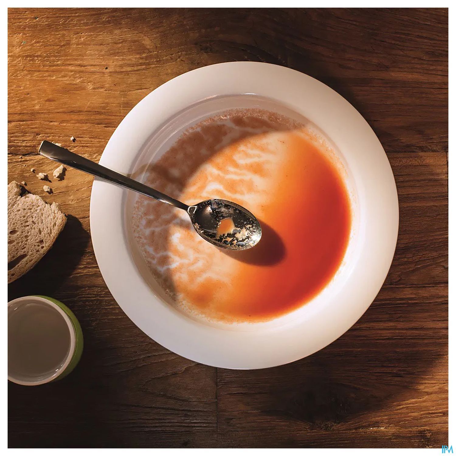 Le corps de l'assiette est oblique de manière à ce que la nourriture glisse d'un côté contre un bord incliné.