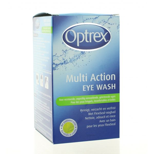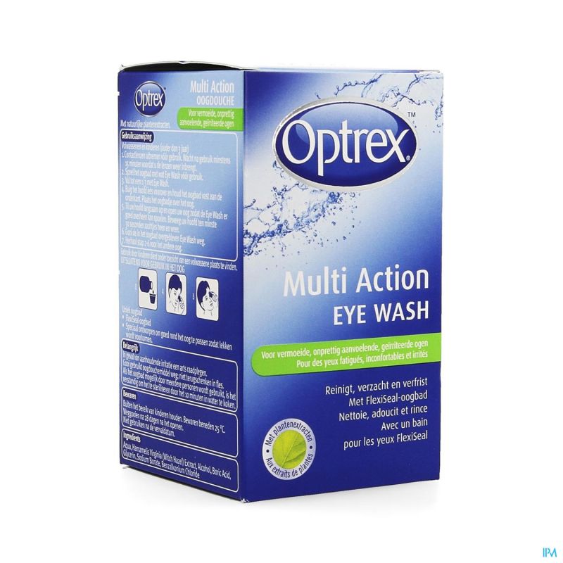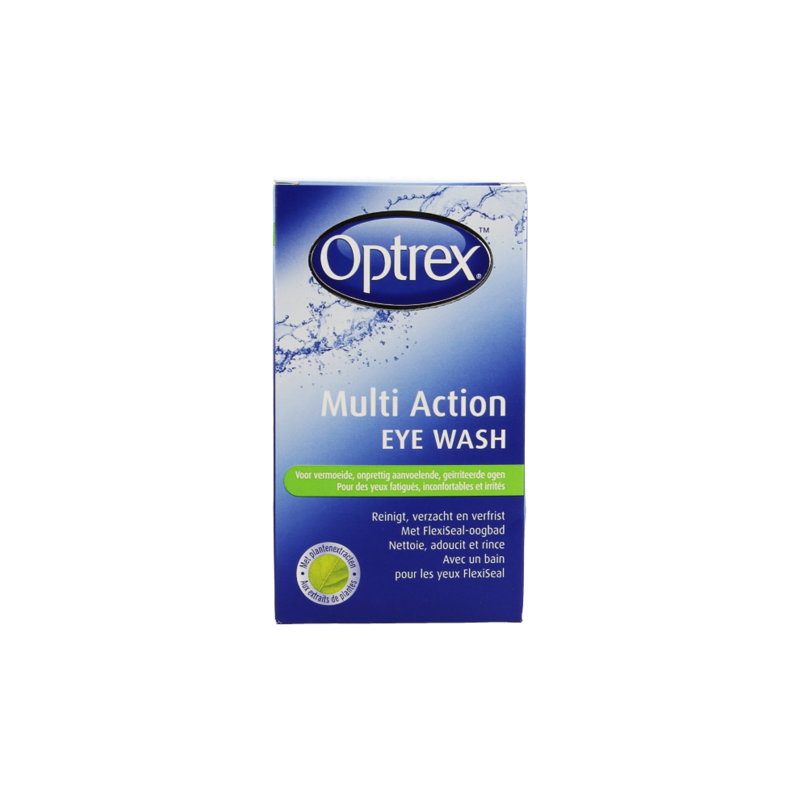 Optrex Multi Action Eye Wash est un bain oculaire pour des yeux fatigués, inconfortables et irrités. Il nettoie, adoucit et rince les yeux.