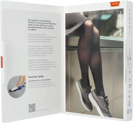 Les varices et les varicosités ne peuvent pas être évitées toute la vie. Mais vous souhaitez tout de même les repousser le plus longtemps possible. Pendant la grossesse, les jambes sont mises à rude épreuve et ont besoin d'être soutenues en douceur. C'est ce que propose VenoTrain micro. Grâce à sa teneur en microfibres de 50 %, notre bas de compression le plus populaire est très souple et agréable pour la peau.