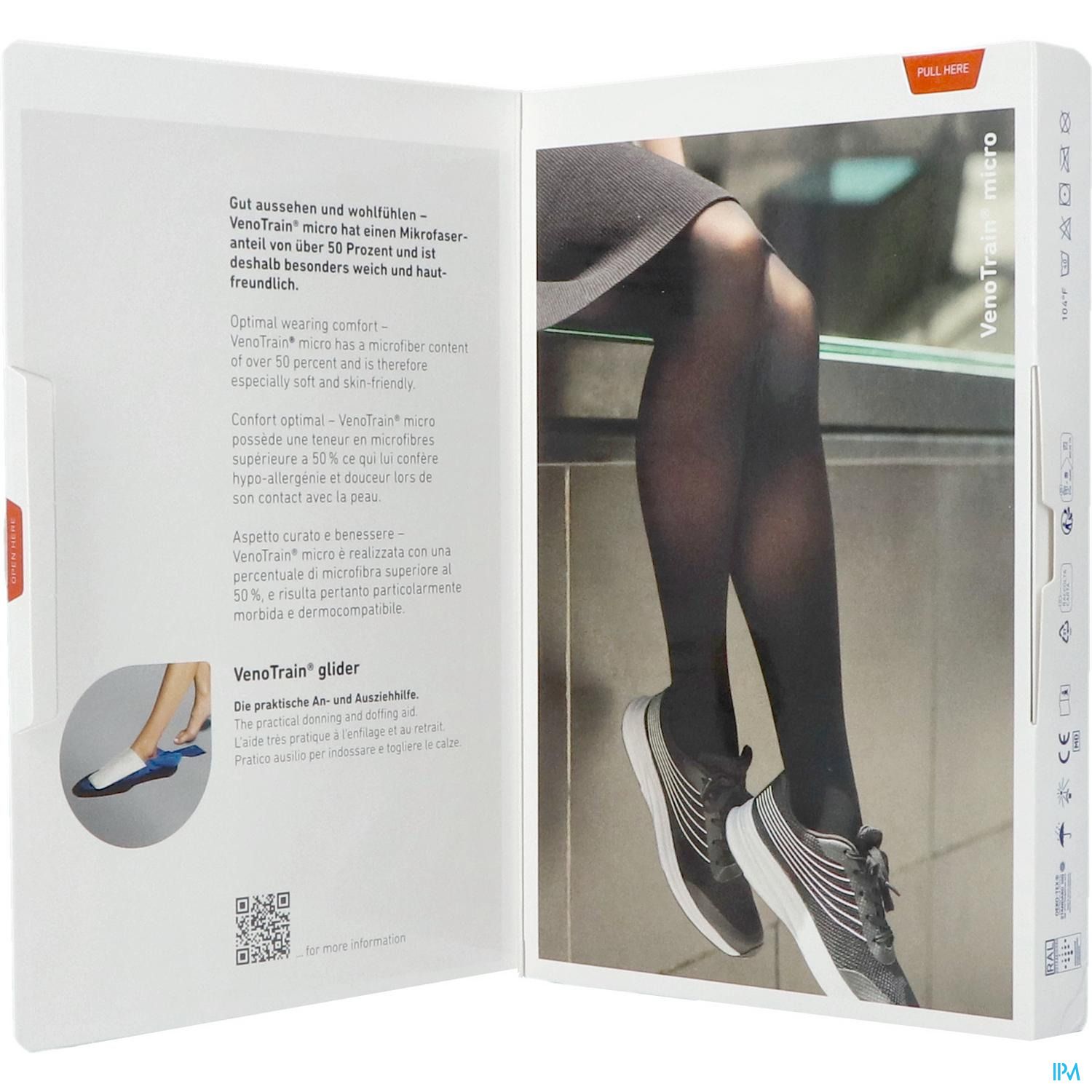 Le tricot élastique permet à la peau de respirer et d'évacuer l'humidité, de sorte que le bas ne devient pas inconfortablement chaud. En outre, VenoTrain micro stimule la circulation et soulage vos veines. La coupe infroissable et les zones de confort intégrées au niveau du talon et de la plante du pied garantissent également un confort de port optimal.