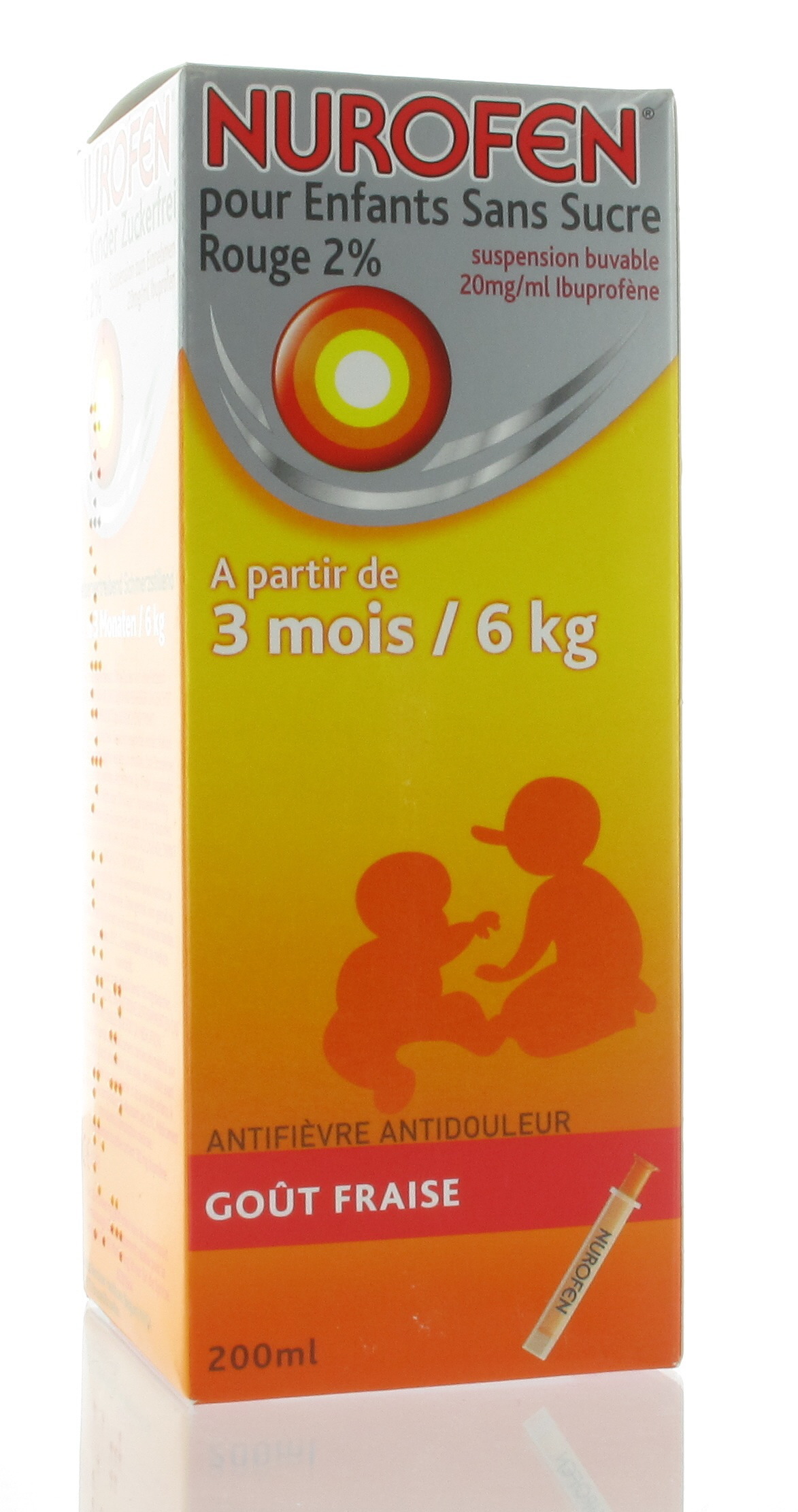 NUROFEN ENFANT FRAISE 2% SUSPENSION SANS SUCRE 200 ML est un médicament : merci de lire attentivement la notice. Pas d'utilisation prolongée sans avis médical.