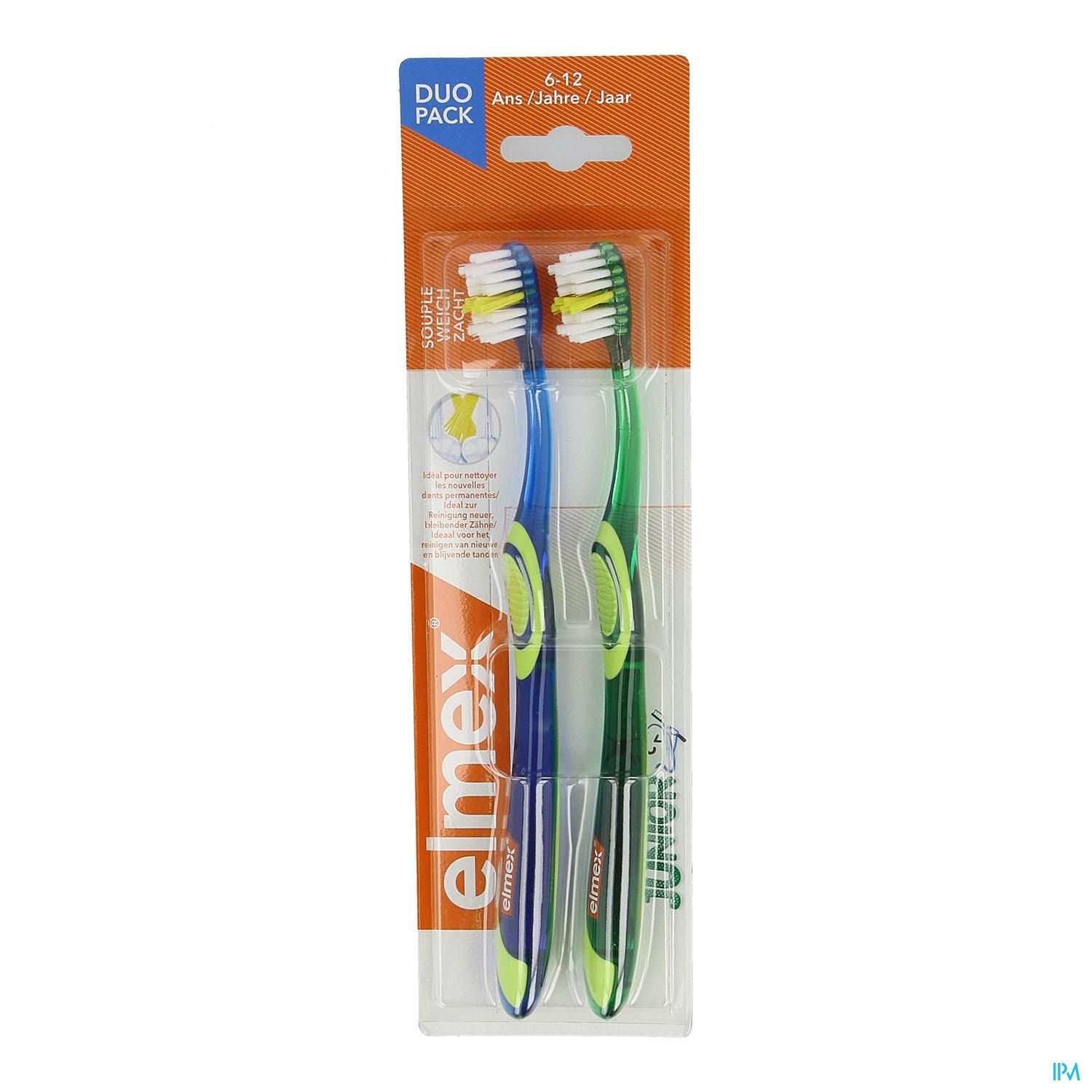 Cette brosse à dents souple a été conçue spécialement pour les enfants de 6 à 12 ans dont les dents définitives viennent d'apparaître. Cette brosse à dents pour enfants possède une petite tête, ce qui lui permet d'atteindre facilement les dents du fond difficiles à atteindre.