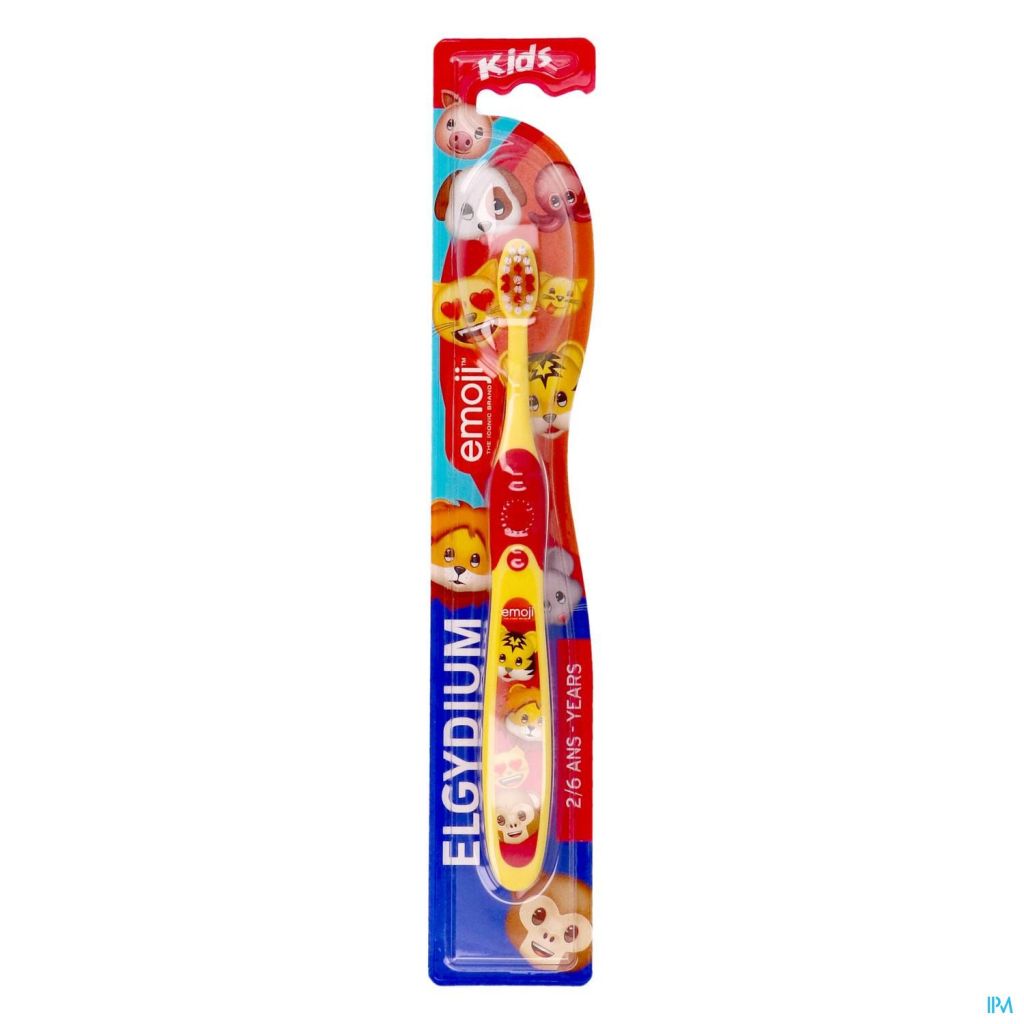 La brosse à dents ELGYDIUM Kids Emoji 2 à 6 ans, avec ses Emojis amusants, est spécialement conçue pour les petites mâchoires. Elle accompagne, au fil des années, les enfants vers de plus en plus d'autonomie. Ses brins en nylon de qualité supérieure respectent les dents de lait et les gencives et rendent le brossage quotidien agréable et tout doux. Ils épousent parfaitement la forme des dents de lait, pour un nettoyage complet de la surface dentaire. Ses brins colorés, au centre, ont quant à eux été disposés là pour aider les enfants à bien doser le dentifrice, sans excès. Son manche antidérapant et ergonomique tient bien dans la main, même lorsqu'elle est mouillée. Faire des animaux émojis de véritables amis du brossage, ça donne envie de sourire de toutes ses dents !