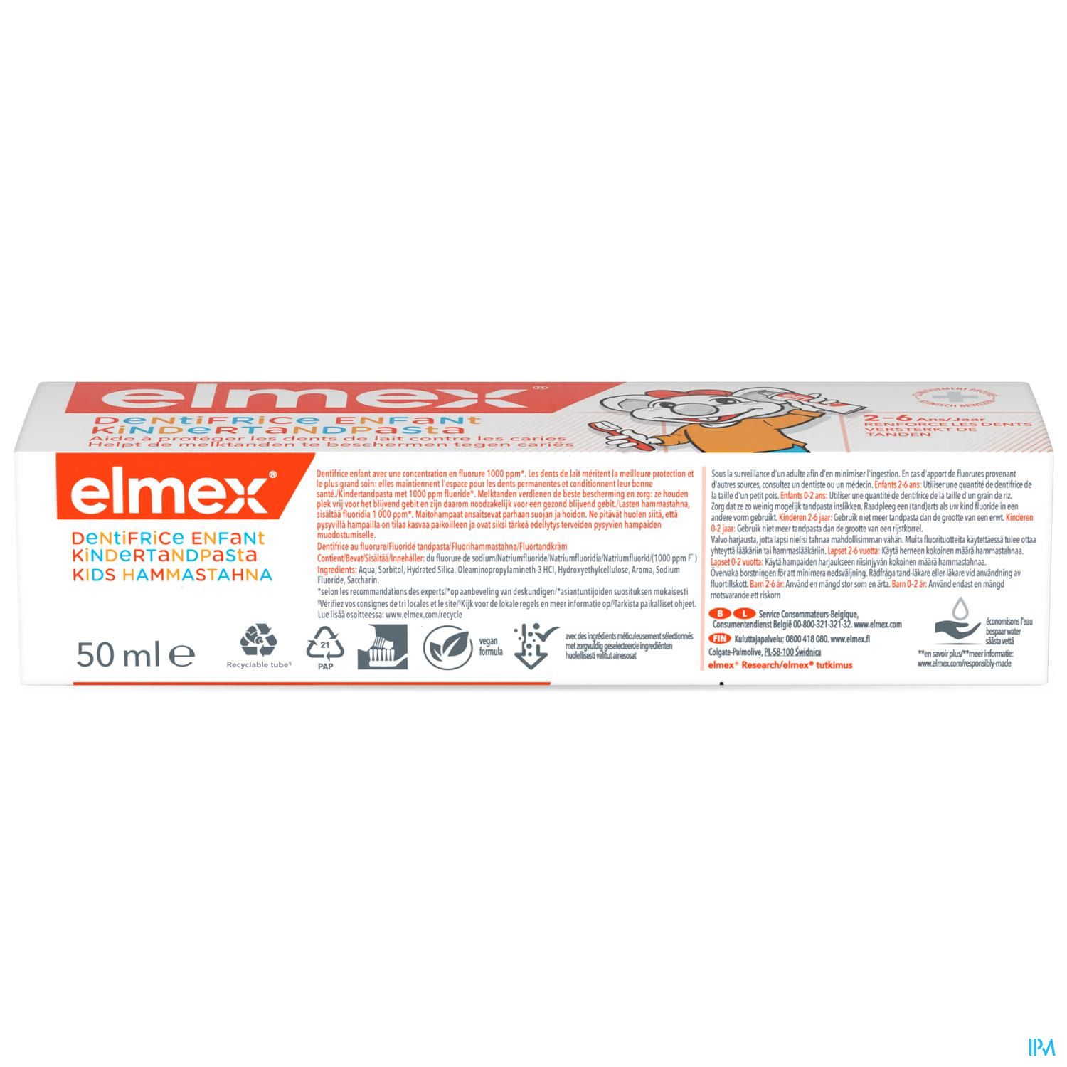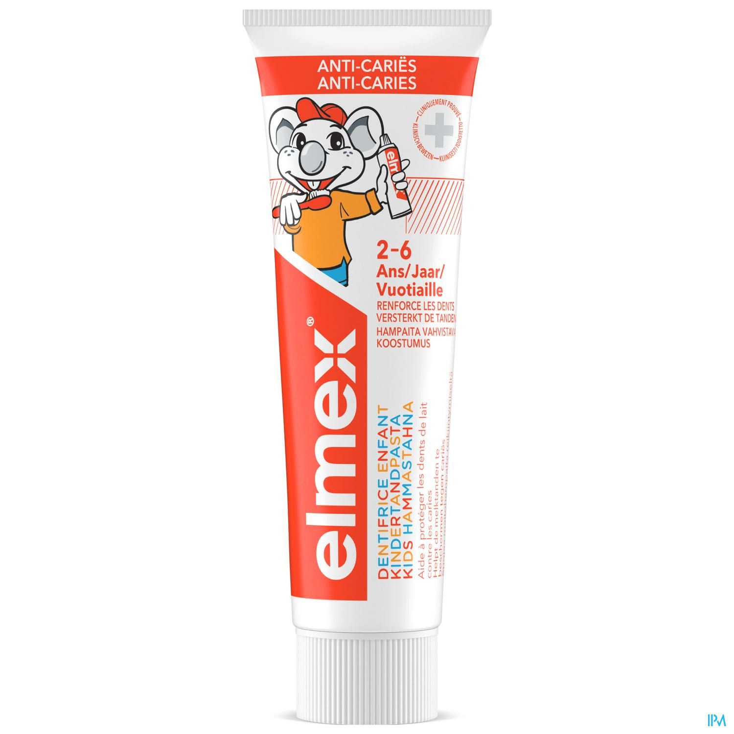 Prenez soin des dents de lait de votre enfant et brossez-lui les dents avec le dentifrice elmex pour enfants 2-6 ans, une bonne préparation pour des dents d'adulte saines. Ce dentifrice pour enfants à 1000 ppm de fluor* respecte les gencives de votre enfant et contient du Neo-Aminex : la dernière technologie amine + fluor. La technologie de ce dentifrice pour enfants protège efficacement contre les caries et forme une couche protectrice de fluorure de calcium sur l'émail des dents. Le dentifrice pour enfants ré-enrichit l'émail en minéraux perdus à cause des caries et rend les dents plus résistantes à la perte de minéraux liée aux caries.