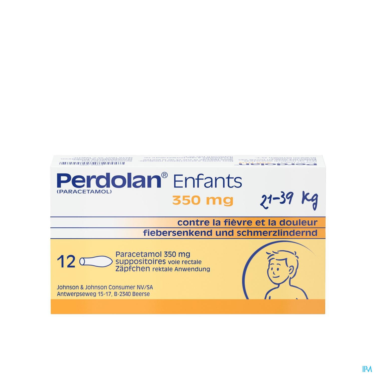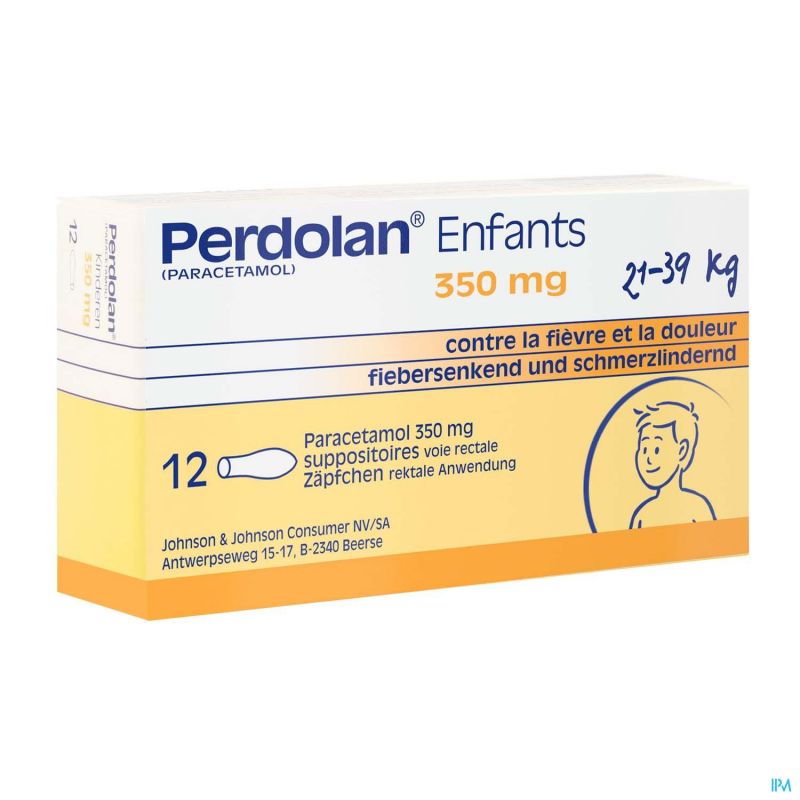 Pour les enfants de 21 à 30 kg entre 6 et 9 ans, un suppositoire de 350 mg jusqu'à quatre fois par jour. Pour les enfants de 31 à 39 kg entre 10 et 12 ans, un suppositoire de 350 mg jusqu'à six fois par jour, avec un intervalle d'au moins quatre heures. Si la douleur ne diminue pas ou si les symptômes s'aggravent après trois jours, contacter votre médecin. Perdolan® Enfants suppositoires est un médicament. Lire la notice d'information avant de l'utiliser.