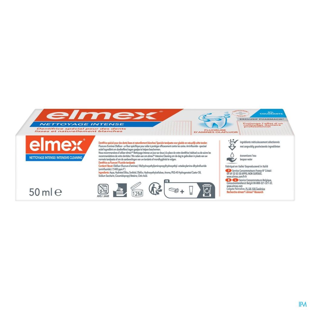 Rien n'est plus agréable que la sensation obtenue après un nettoyage des dents réalisé par son dentiste. Désormais, grâce au dentifrice elmex® Nettoyage Intense, vous pouvez prolonger la sensation obtenue après un nettoyage professionnel chez le dentiste jusqu'à 12 semaines*. Avec ce dentifrice, vos dents restent lisses et naturellement blanches pour un sourire éclatant. Ce dentifrice nettoie vos dents en profondeur et ses particules polissantes spéciales empêchent la réapparition des taches.