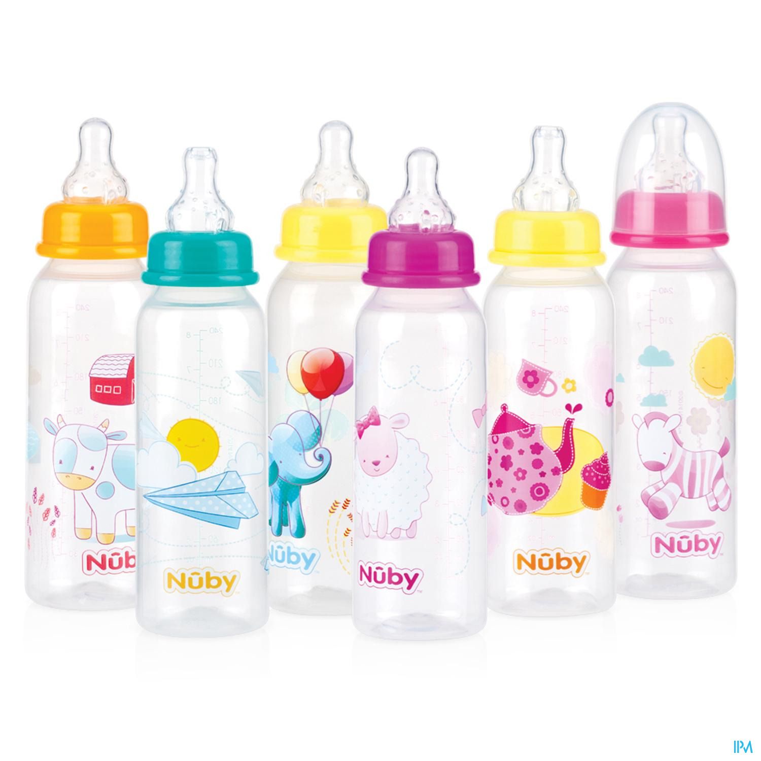 Ce biberon est muni d'une tétine à débit variable pour utiliser dès 3 mois ou avec du lait épaissis. Pour que ce biberon s'adapte à vos besoins, vous pouvez également l'utiliser avec la tétine anti-colique à débit lent adaptée. Des ergots massent les gencives sensibles du bébé. Un capuchon hygiénique protège la tétine. Le biberon a une contenance de 240ml et est disponible en 6 dessins différents.