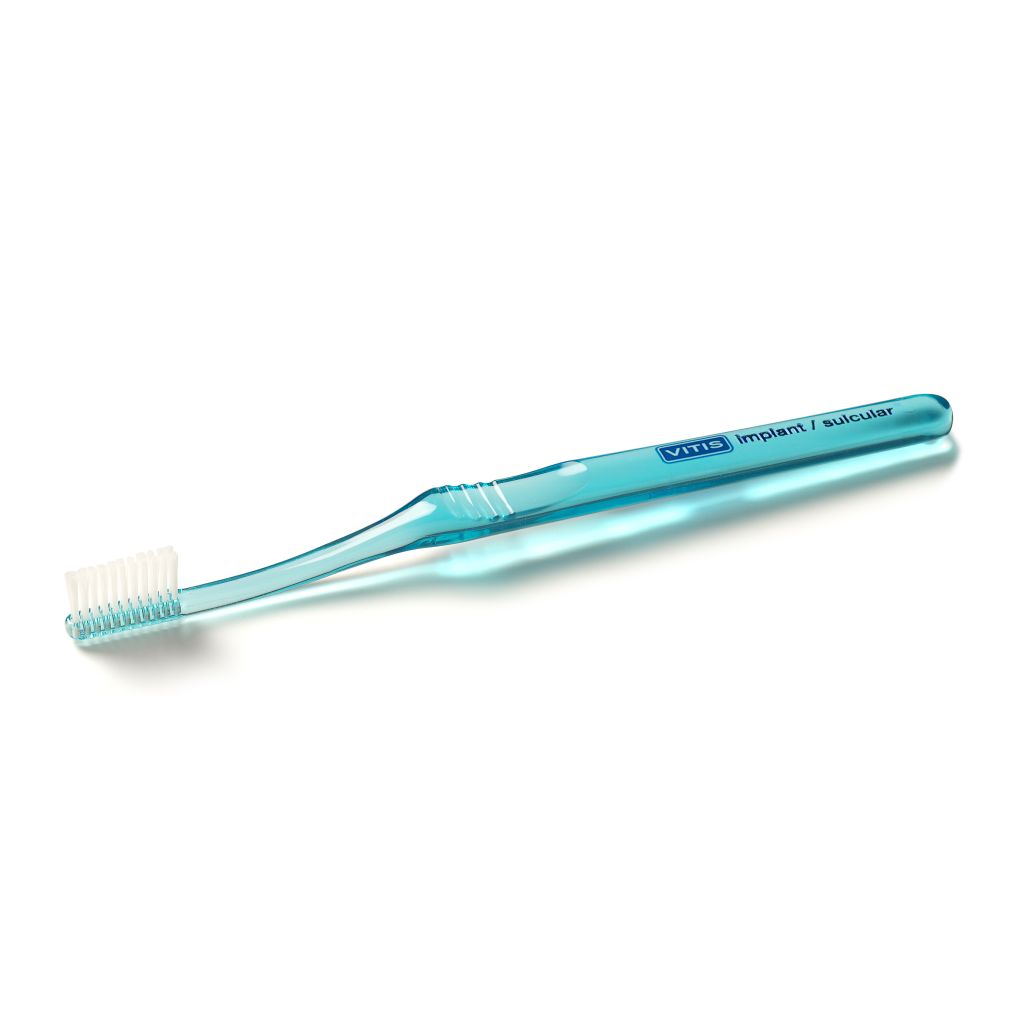 Brosse à dents spéciale. Indiqué pour un nettoyage doux mais complet d'une bouche avec des implants.