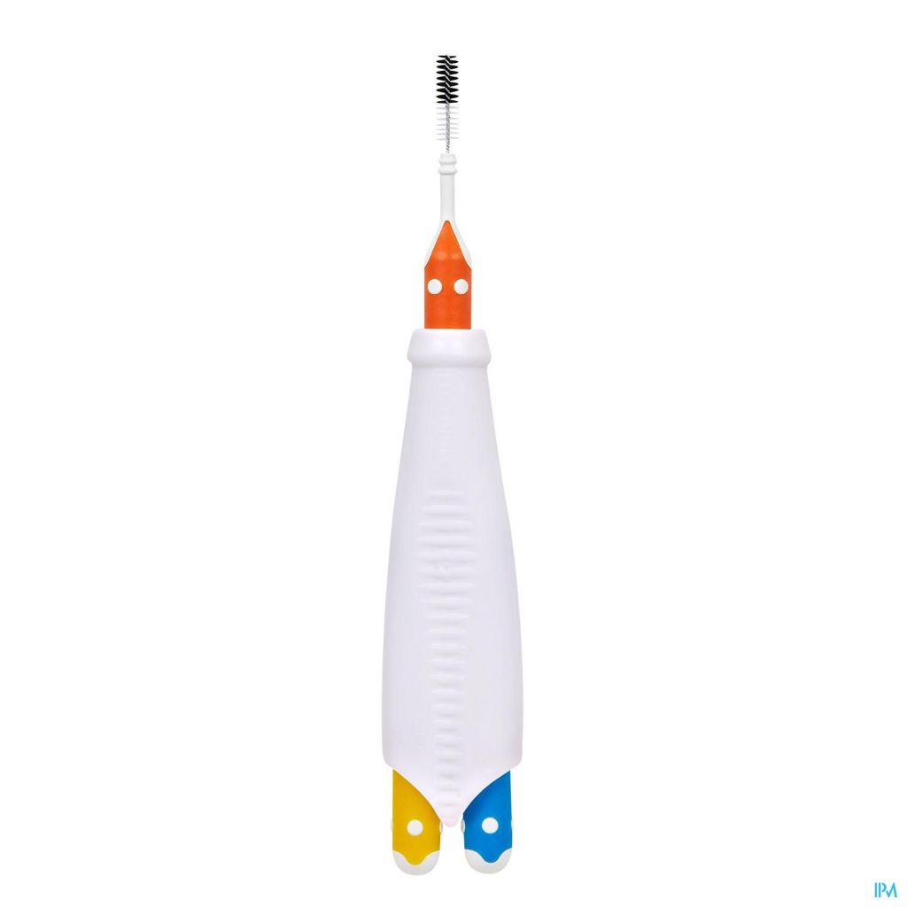 Manche doté d'une surface anti-dérapante offrant une excellente prise en main, développé pour ranger et protéger les 3 brossettes après usage.