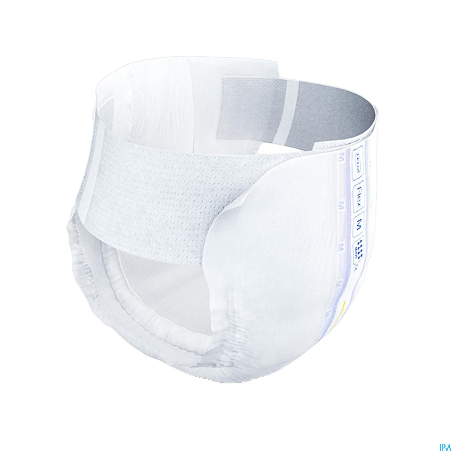 Protection avec ceinture et protection supplémentaire, qui permet un change plus facile et plus ergonomique et qui allie confort et discrétion. TENA Flex Maxi épouse les formes du corps et dispose d'un double noyau d'absorption pour une meilleure protection anti-fuites.
