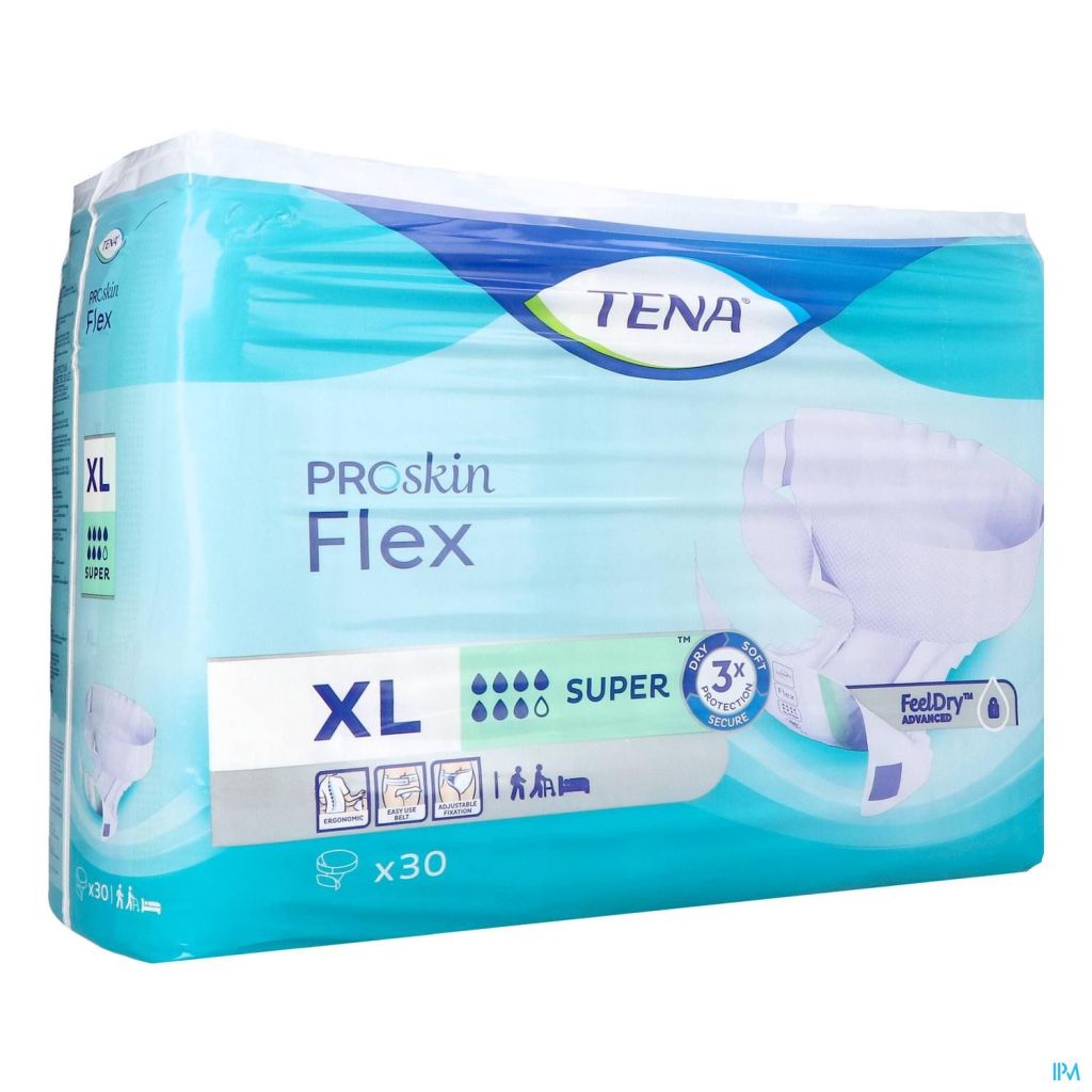Produit avec ceinture et capacité d'absorption supplémentaire, qui permet un change plus facile et plus ergonomique et qui allie confort et discrétion. TENA Flex Super épouse les formes du corps et dispose d'un double noyau d'absorption pour une meilleure protection anti-fuites.