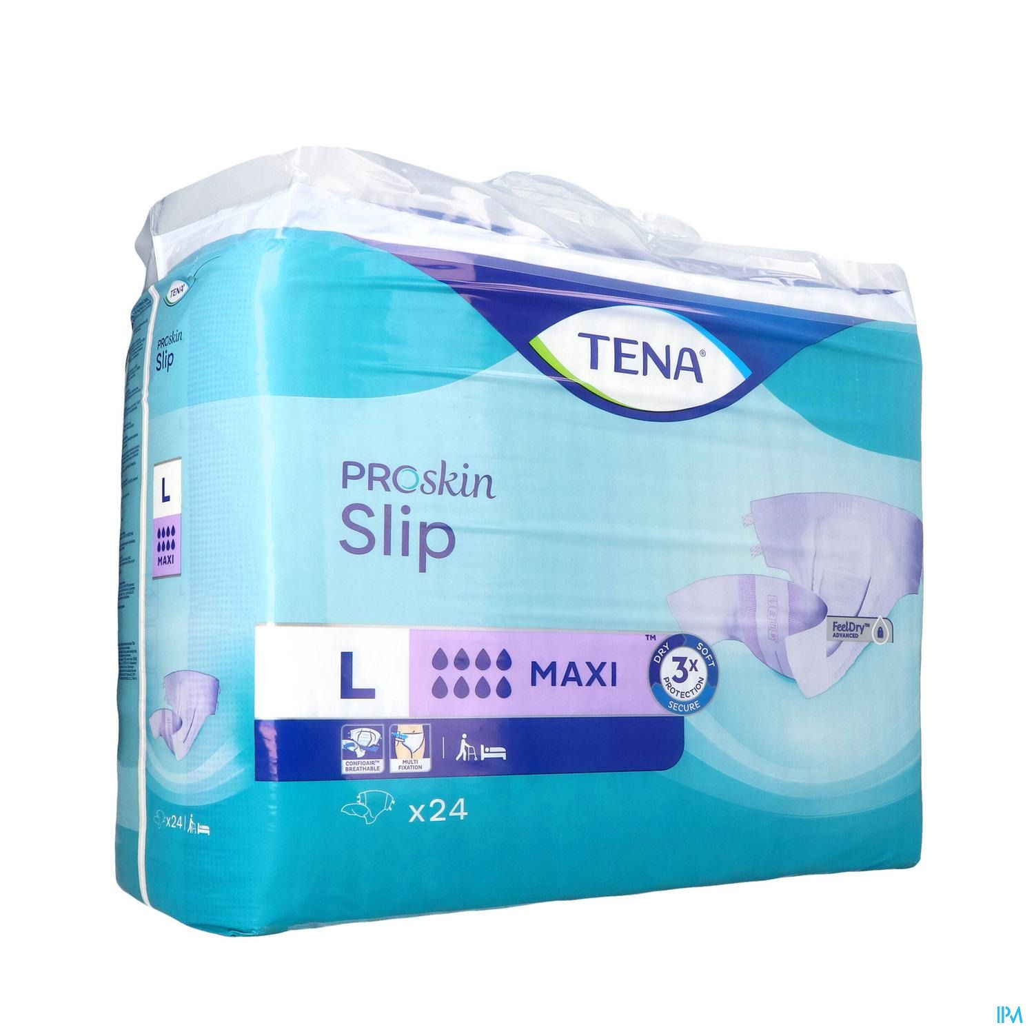 TENA Slip Maxi est une protection contre l'incontinence ouverte d'une seule pièce, dotée de bandes ajustables pour un ajustement parfait, un confort et une protection contre les fuites. Contrairement à de nombreuses protections standard pour adultes, TENA ProSkin Slip est fabriquée dans un matériau doux semblable à du textile, épouse le corps et offre un haut niveau de protection contre les fuites.