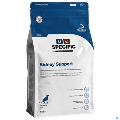 Specific Kidney Support FKD est un aliment spécial pour les chats adultes souffrant de problèmes rénaux. Cet aliment a été développé pour soutenir les chats adultes souffrant de troubles cardiaques, hépatiques ou rénaux. L'aliment est riche en oméga-3 provenant du poisson, a une faible teneur en protéines et contient des vitamines et des minéraux équilibrés pour soutenir la tension artérielle et soulager les reins. Cet aliment sec peut également être utilisé pour lutter contre la formation de grains d'oxalate de calcium, d'urate ou de cystine.