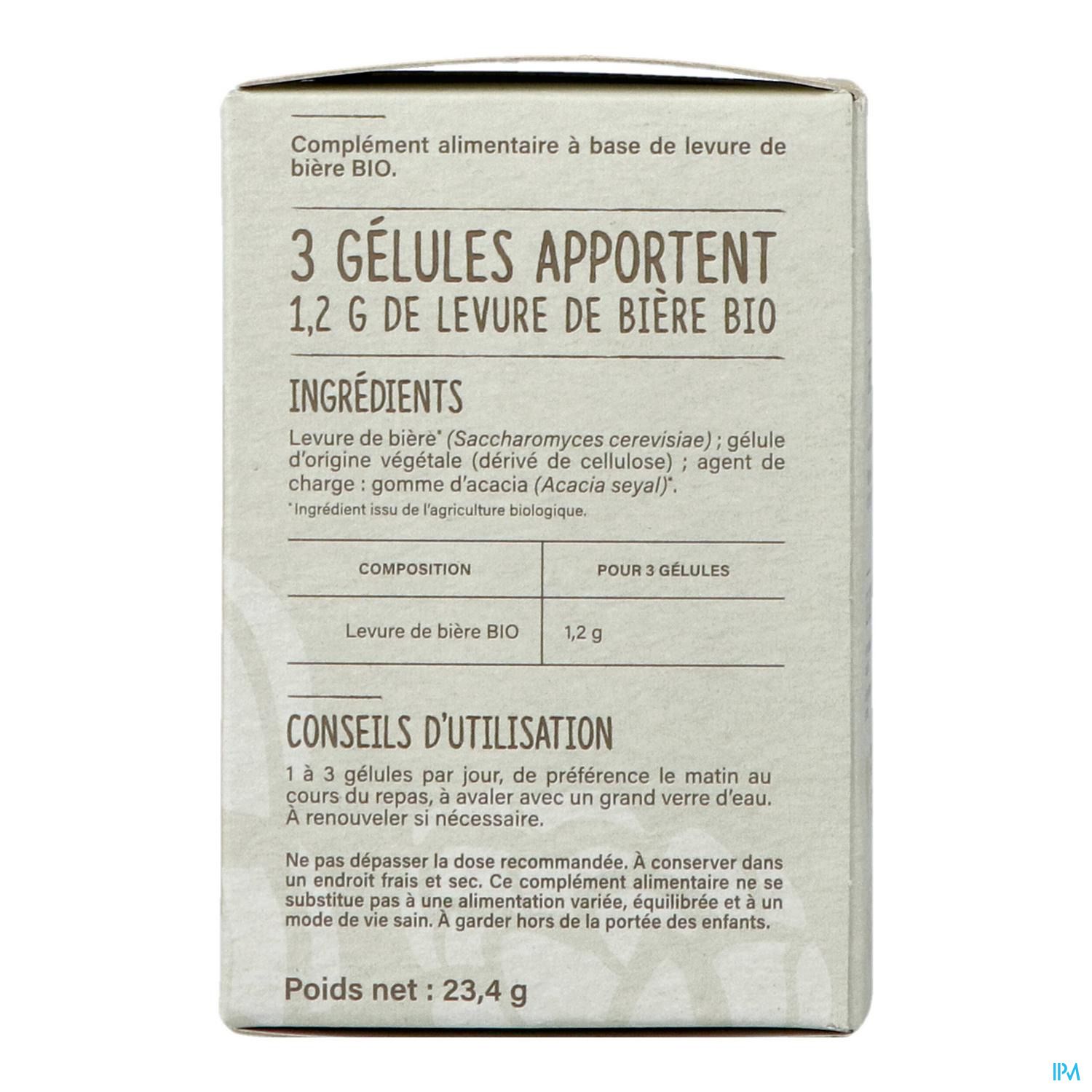 Levure de bière* (Saccharomyces cerevisiae) ; gélule végétale (dérivé de cellulose) ; gomme d'acacia* (Acacia seyal).