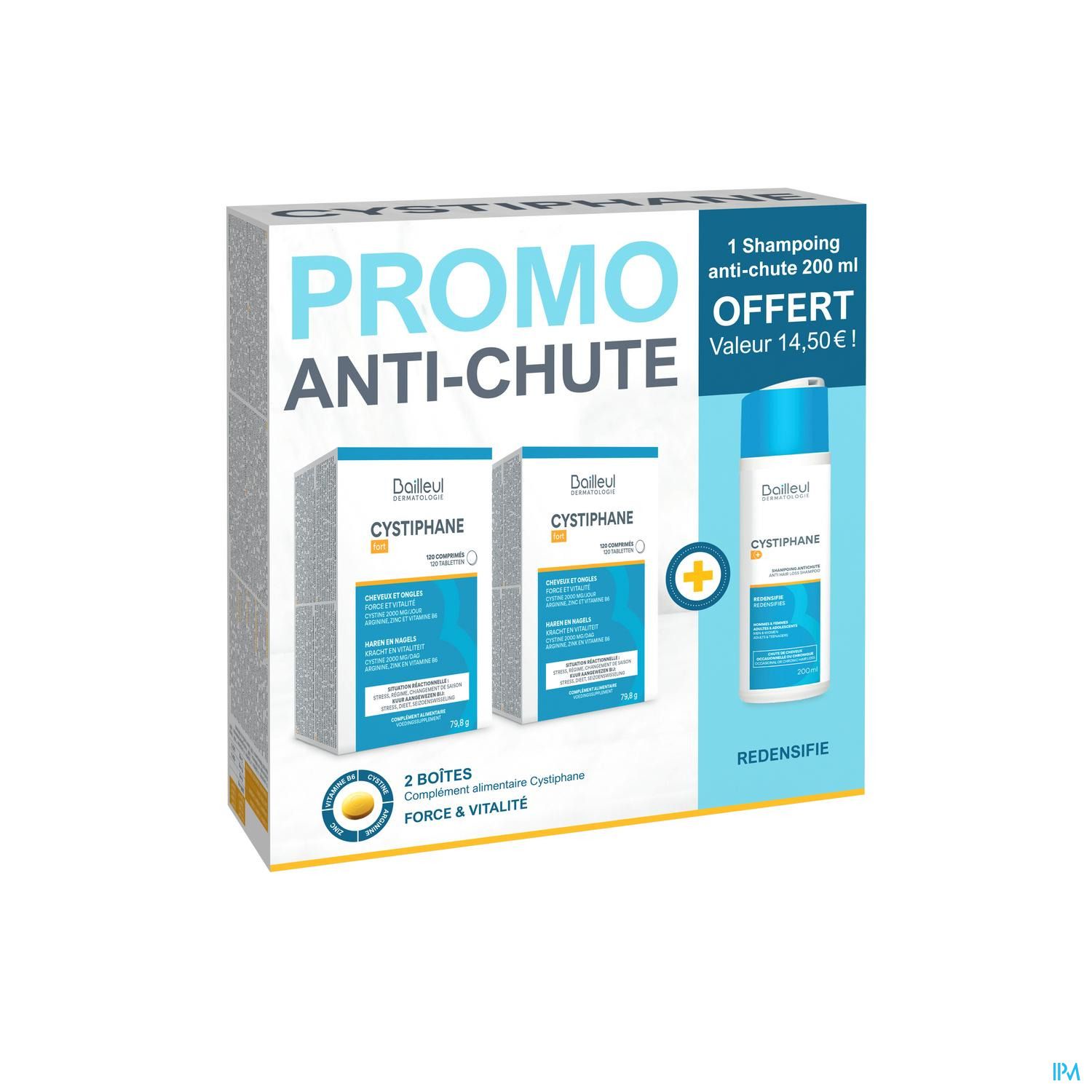Cystiphane Fort Cheveux Et Ongles Promopack (2 X 120 Comprimés + 1 Shampoing Antichute 200 Ml Gratuit)