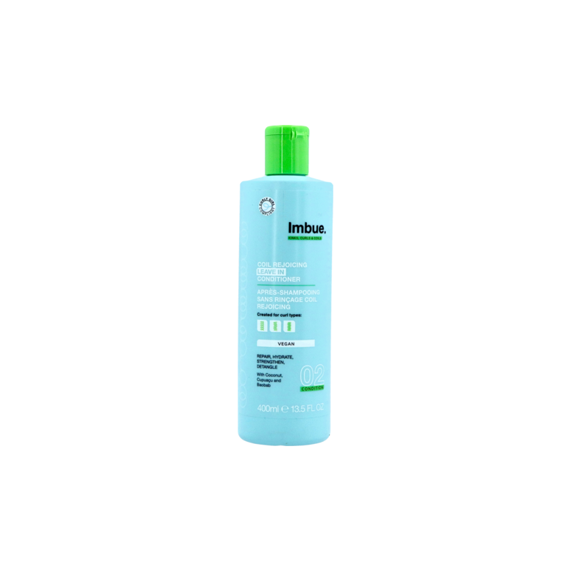 Hydratez vos boucles naturelles avec le revitalisant sans rinçage Imbue Coil Rejoicing.Le revitalisant sans rinçage léger est rapidement absorbé et hydrate en profondeur pour des boucles 4A-4C, en utilisant de la noix de coco, du baobab et du cupuaçu.