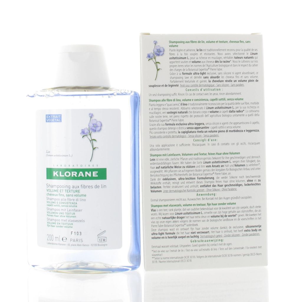 Le shampooing klorane aux fibres de lin est un shampooing pour cheveux fins et sans volumes.