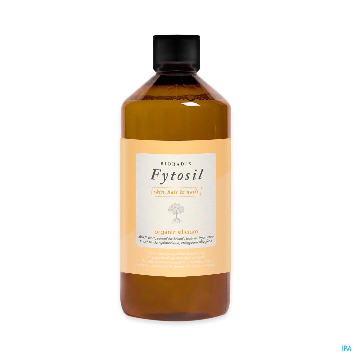 Eau, Acide silicique 43,8 mg (dont Silicium : 13 mg), Xylitol (stabilisant), Hydrolysat de collagène 90 mg (produit à base de poisson), Acide hyaluronique 2,7 mg, Bisglycinate de Zinc 5,4 mg (dont Zinc : 1,5 mg 15% AR), Levure enrichie en Sélénium 3,75 mg (dont Sélénium : 8,25 μg 15 % AR), D-biotine (7,8 μg - 15,6% AR*), Stabilisants : gomme guar, gomme xanthane; Arômes; Emulsifiant : Gomme d'acacia; Correcteurs d'acidité : acide citrique, gluconate de calcium.