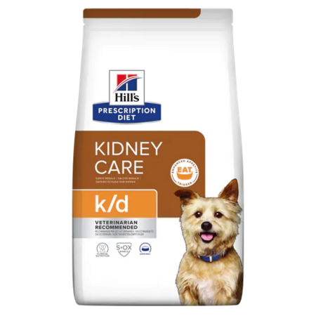 Les croquettes pour chien Hill's Prescription Diet k/d sont des aliments diététiques complets destinés à soutenir la fonction rénale en cas d'insuffisance rénale chronique chez le chien adulte. Idéal pour les premiers stades de l'insuffisance rénale. Cet aliment est pauvre en phosphore et limité en protéines, mais il contient des protéines de haute qualité.